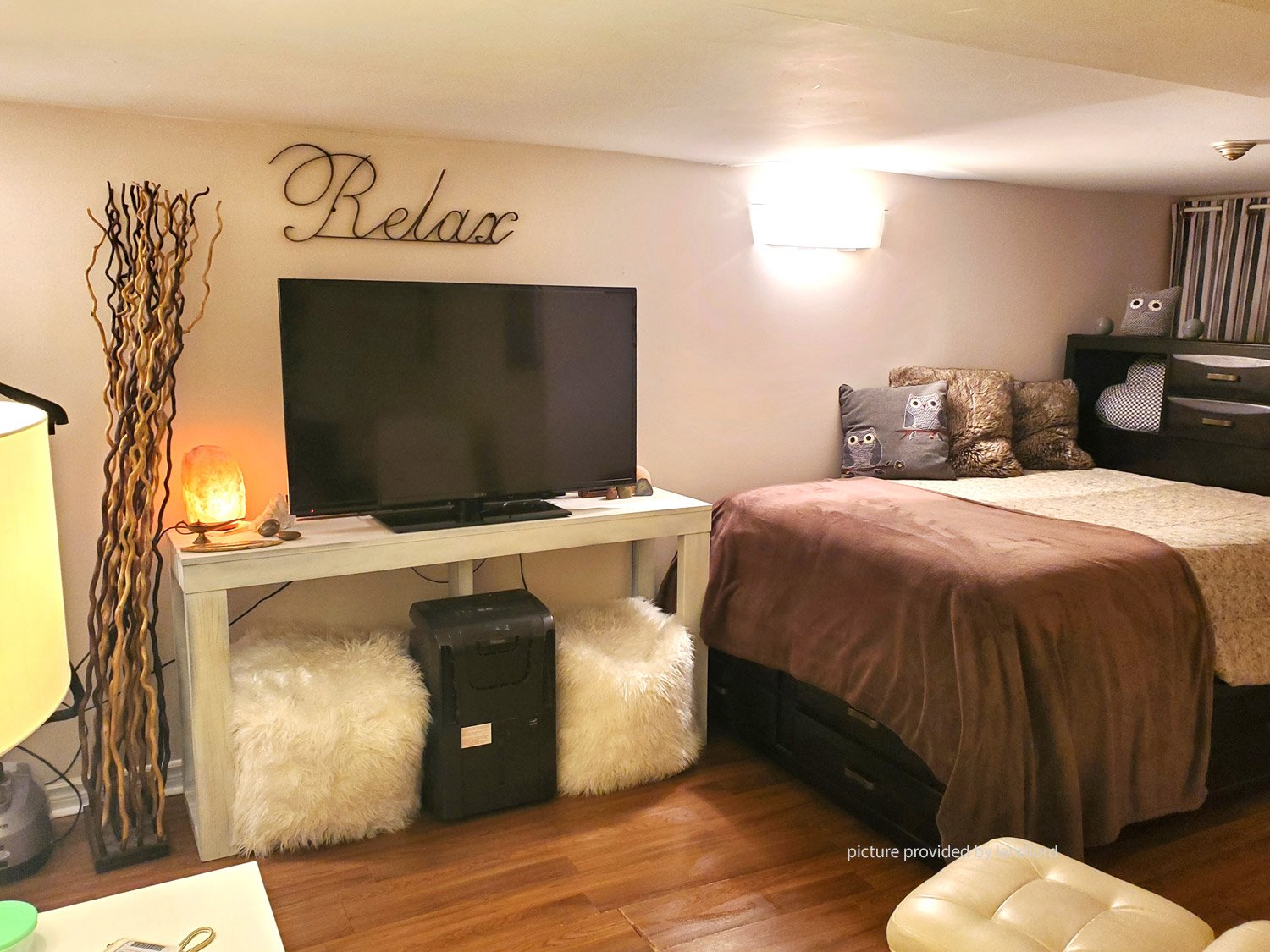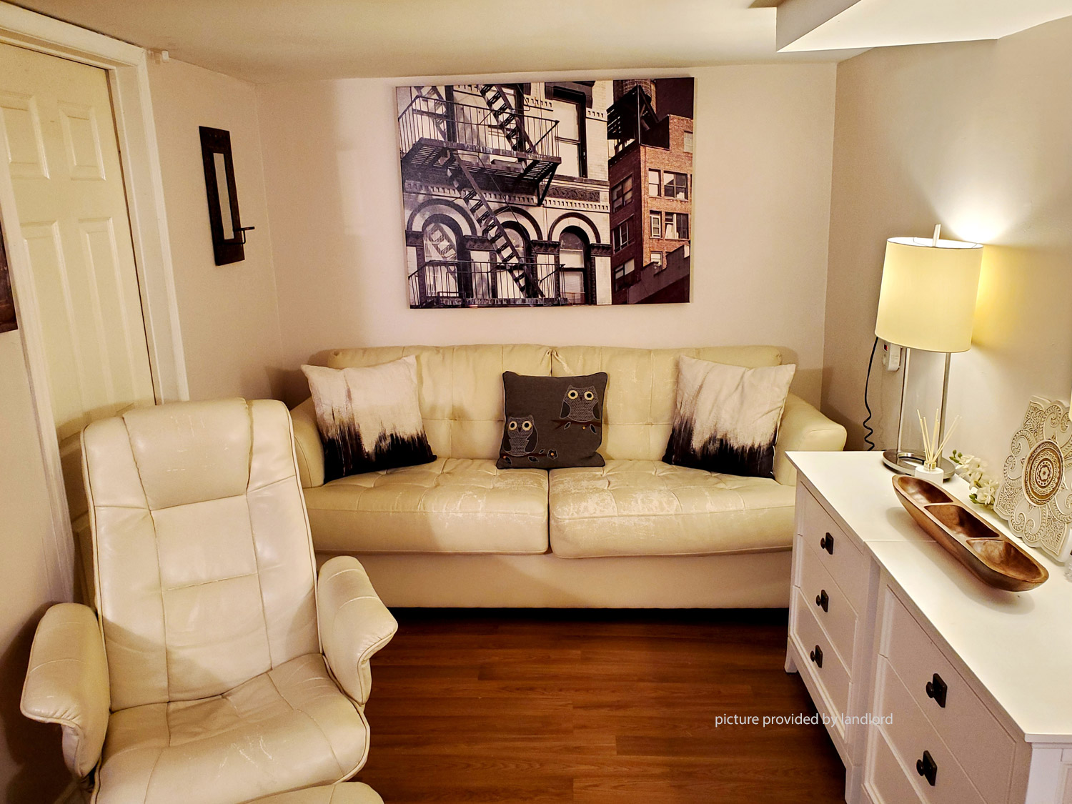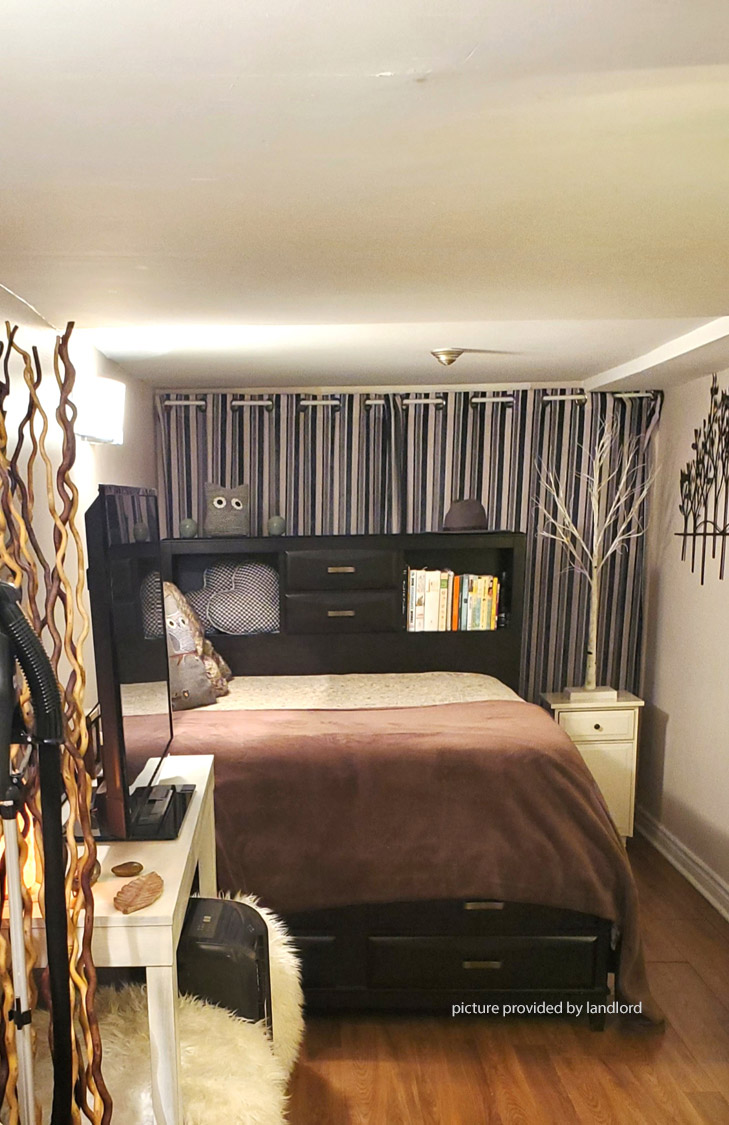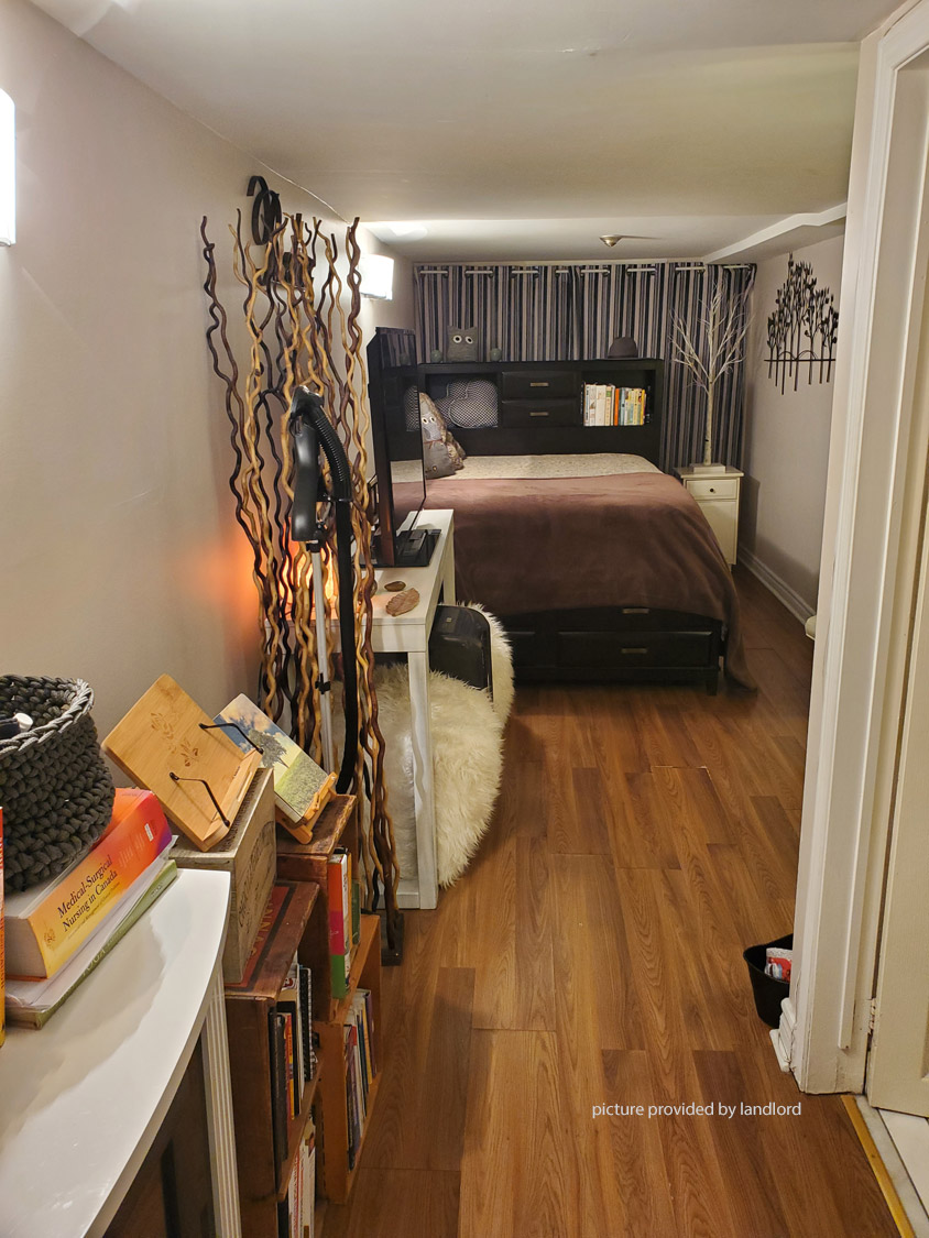 Private entrance to a bright, 1 bedroom walk out lower apartment. Window in