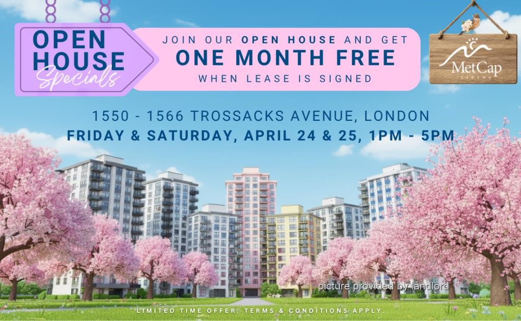 1550 – 1566 Trossacks Avenue is located in London, Ontario at Trossacks and Fanshawe Park Rd E. This mid-rise building complex consists of one-bedroom and two-bedroom suites with a kitchen featuring modern features and finishes including laminate countertops, new overmount sink, and ceramic backsplash. Kitchen appliances included. Bathrooms include upgraded fixtures, new mirror, and new vanity with laminate countertop. Throughout the unit you will find newly finished flooring – either polished and refinished parquet flooring or luxury vinyl plank flooring – new tiles in the kitchen and bathrooms, and brand-new light fixtures. Interior walls and doors have been upgraded with fresh paint and modern hardware to complete the look and feel of your bright and modern space. The property includes on-site staff, on-site laundry, underground resident parking, and surface visitor parking. Conveniently located near public transit, major highways, and several major transport routes, this well-maintained property offers quality apartments for rent. Residents have access to a Dog Park and other services, restaurants, retail stores including Masonville Mall, Walmart, Homedepot, Rexall and Sobey’s. Stoneycreek Public School is only minutes away and Western University and Fanshawe College are also easily accessible from this rental property. Please note townhouses do not include utilities.