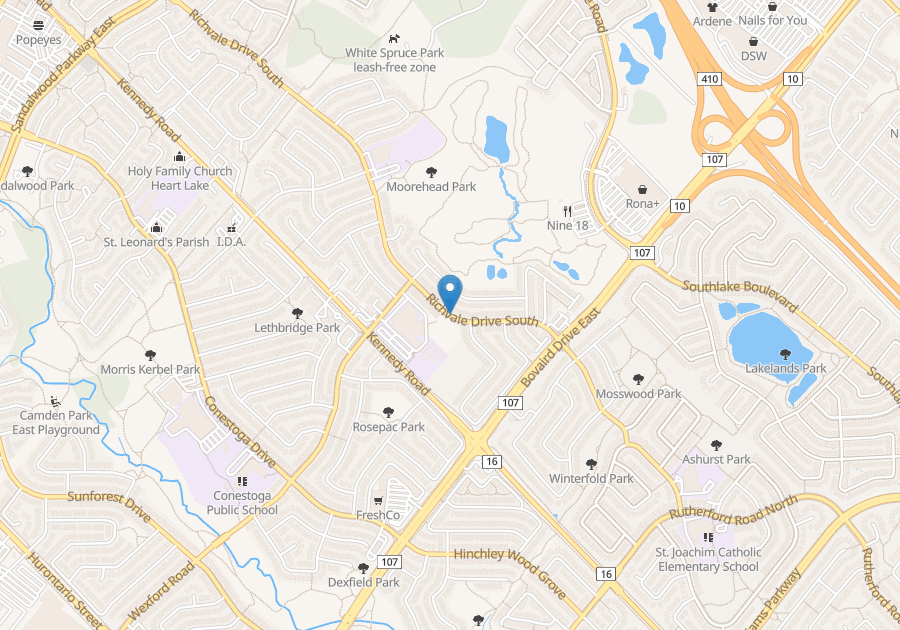 South (main intersection Bovaird Dr / Notre Dame Ave very close to Hwy