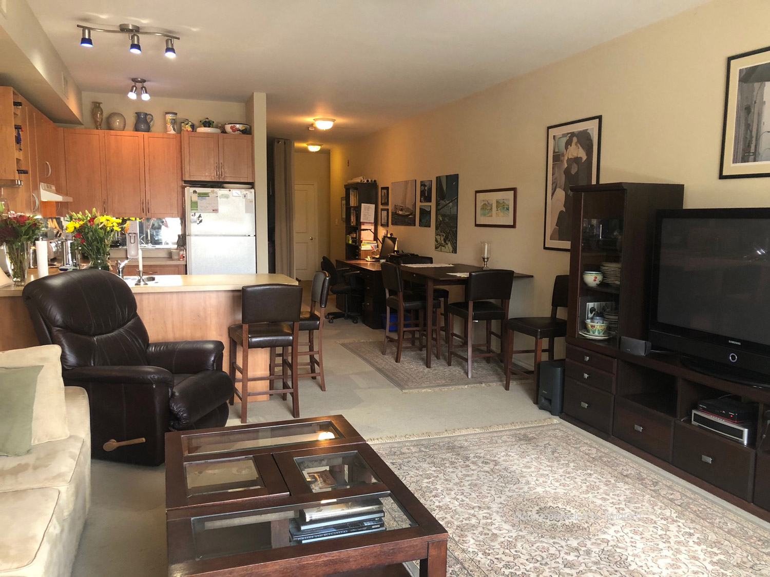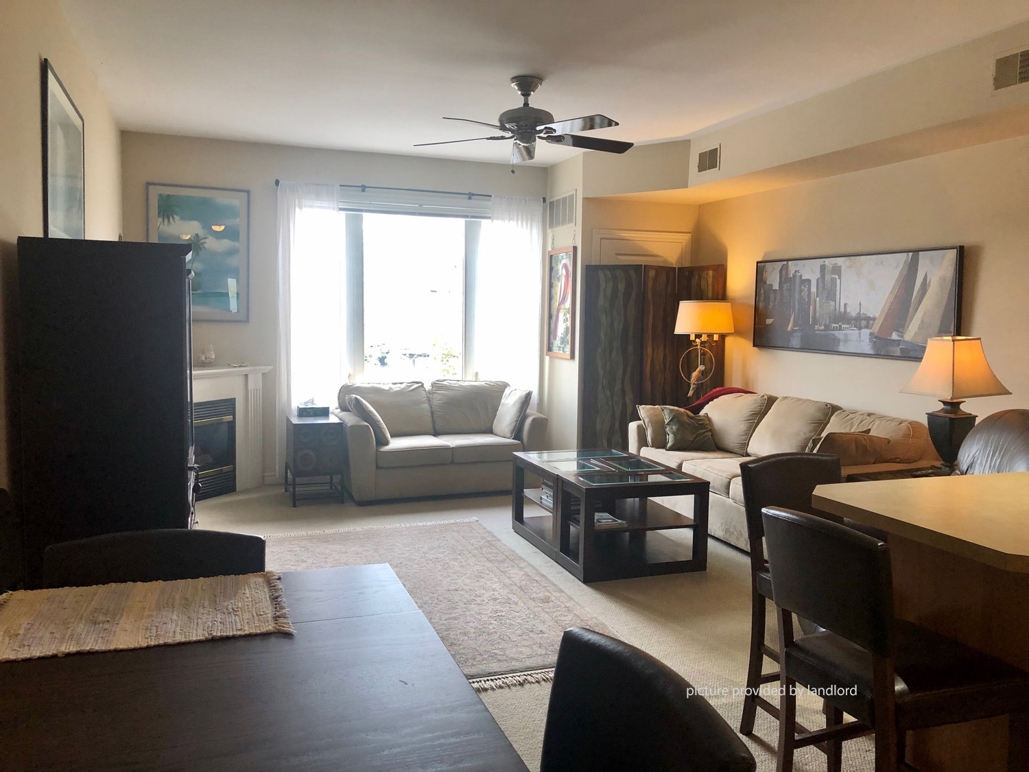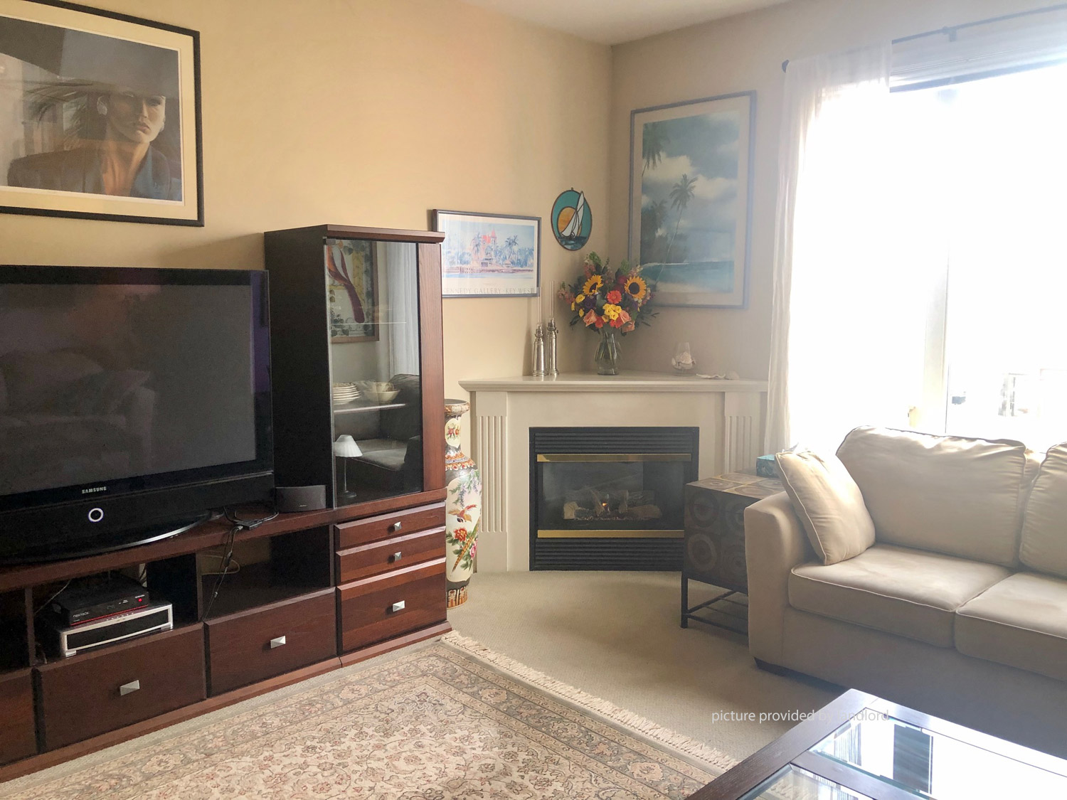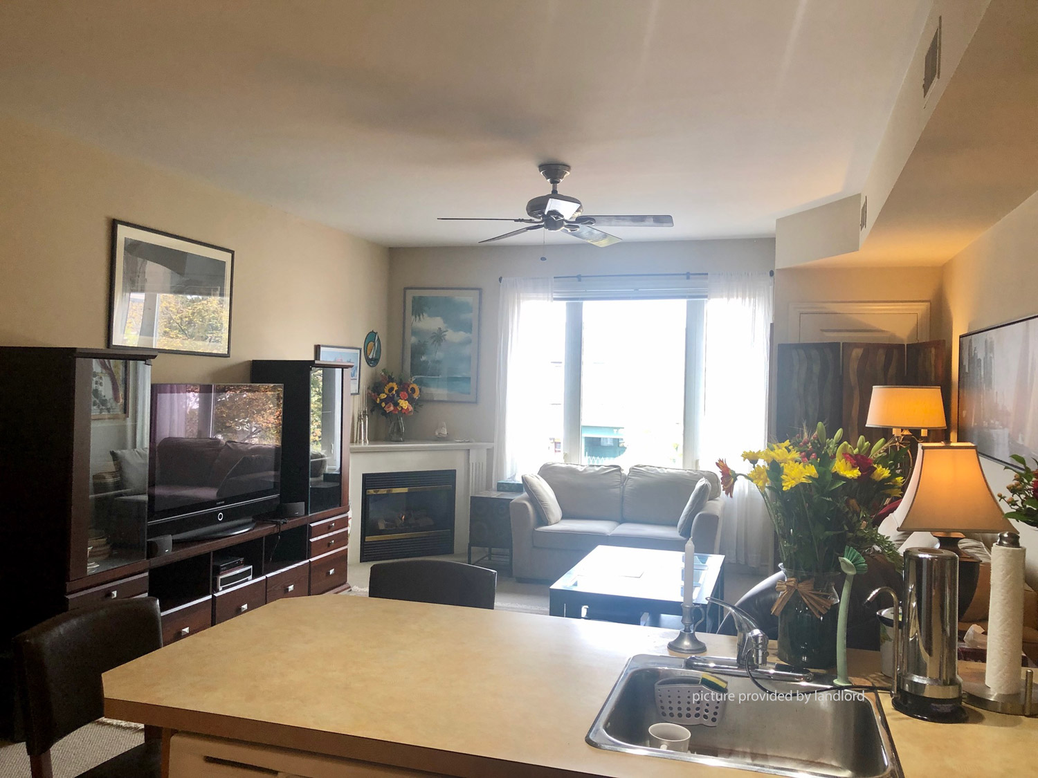 fridge, stove and dishwasher. Gas fireplace in the living room to keep you
