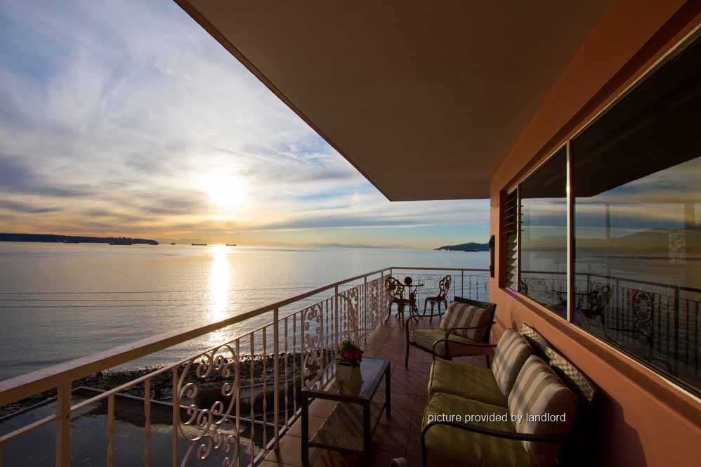 Amenities include beautiful heated indoor and outdoor pools, fitness room and a party/meeting room. There is covered and outdoor parking onsite and underground parking is also available. A laundry room and storage lockers are available. Heat and hot water are included with rent. The Villa Maris, Pink Palace is conveniently located a short walk between Ambleside and Dundarave Villages. The West Vancouver Aquatic, tennis, and senior community center is a five-minute walk from the building. There is direct access to the gorgeous West Van Seawall from the lower parking lot.