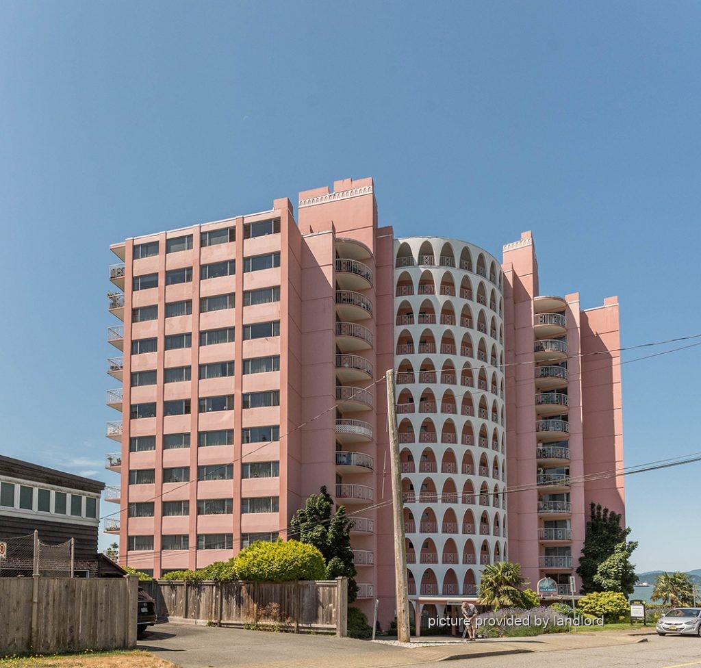 The Villa Maris sits directly on the ocean above the sea wall at 2222 Bellevue Ave in West Vancouver. This luxury concrete high rise is considered the second most important architectural landmark in West Vancouver after the Lions Gate Bridge with its iconic design and elegant pink colored exterior. Our suites look directly out onto the ocean and has unobstructed views sweeping from Stanley Park to the east, Point Gray to the south, and to Lighthouse Point and the mountains of Vancouver Island to the west. These views are available from every picture window and from the large balconies which are on every suite.