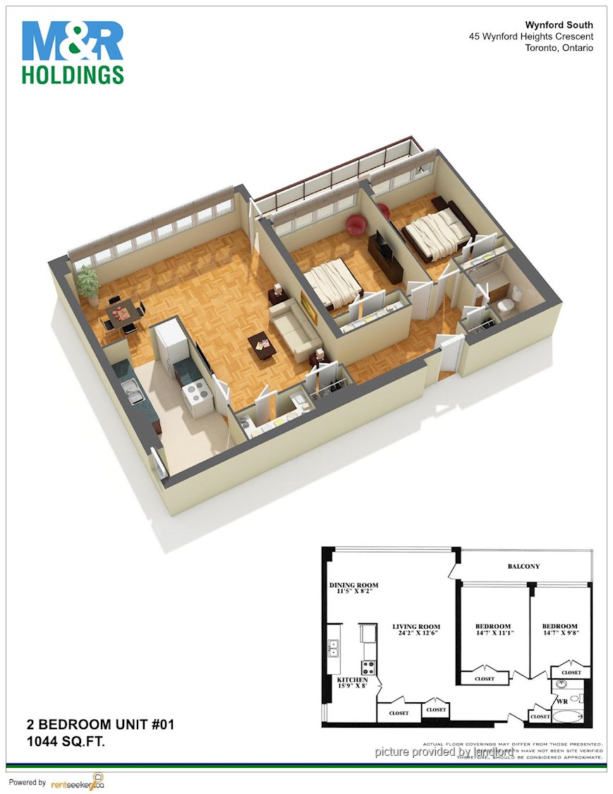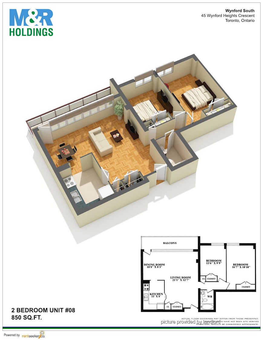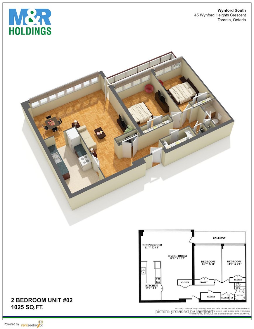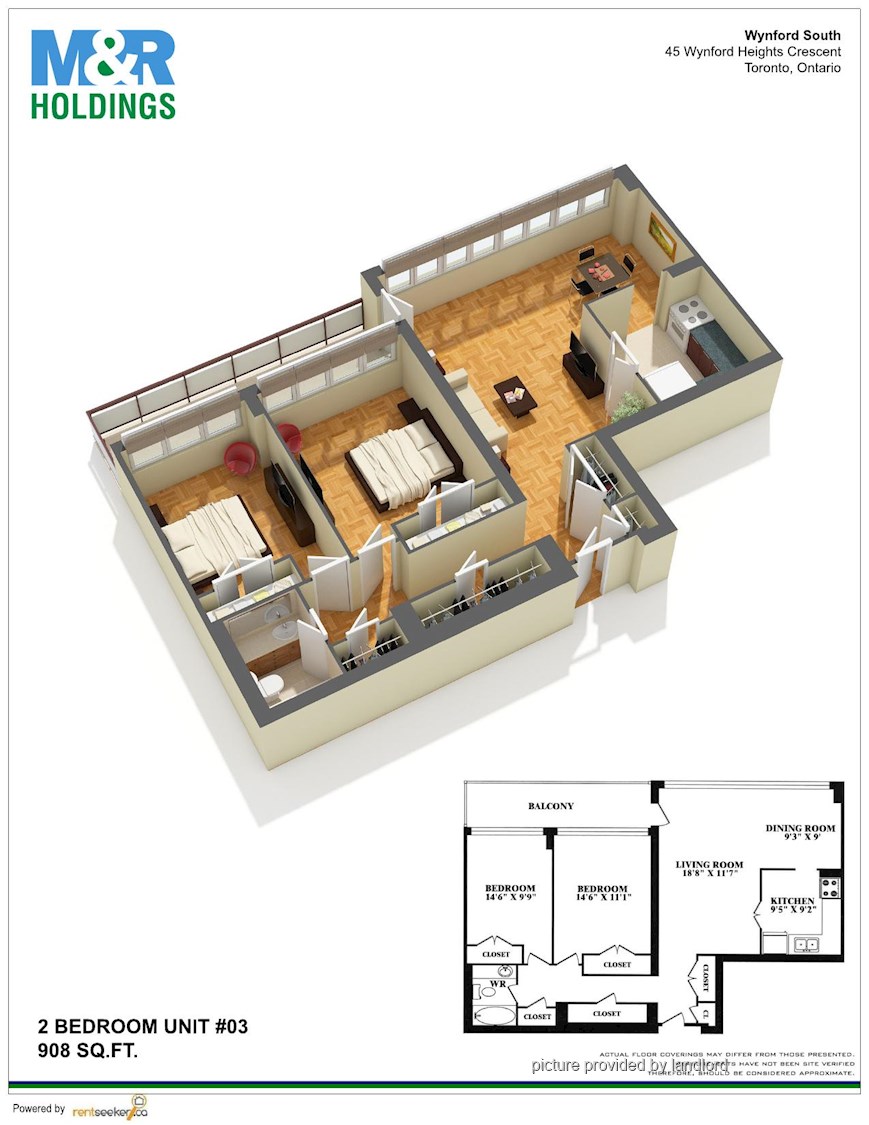 2 Bedrooms apartment. TTC at your doorstep Adjacent to the DVP Close to shopping and restaurants Neighbouring to park system Adjacent to plaza with all amenities Minutes to the 401 and the Gardiner <br/> Visit M & R Holdings form more information.