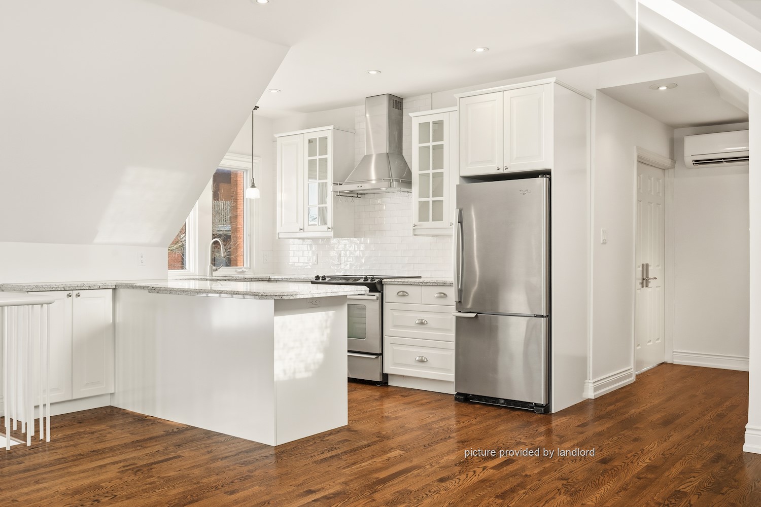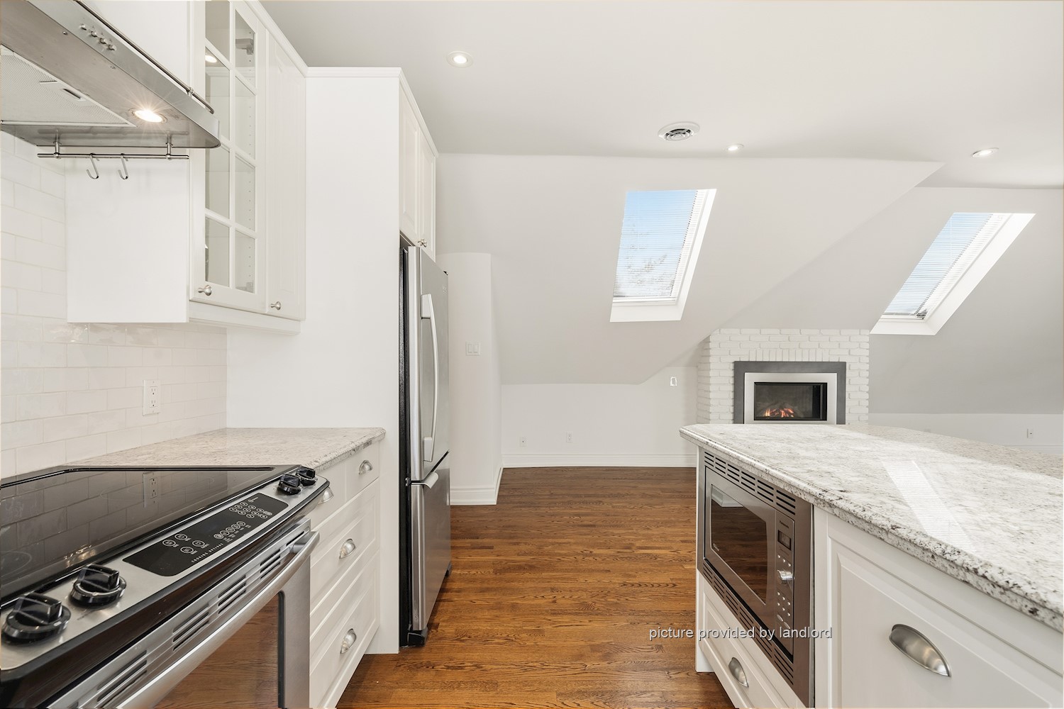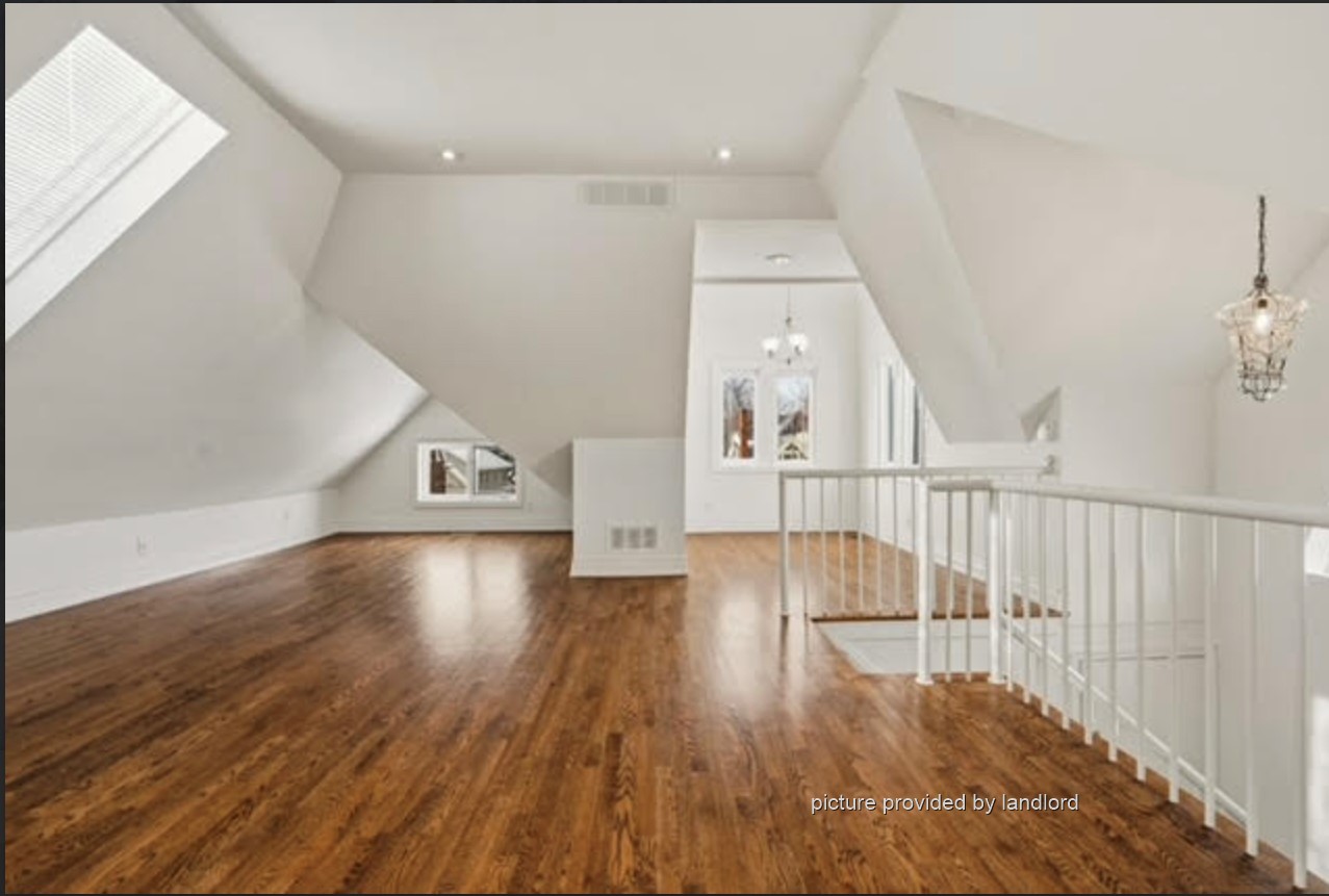 Gorgeous 2 bedroom one-of-a-kind unit in a century mansion. This loft is approximately 1800 square feet and oozes in character. The living room is bright with two sky lights and a gas fireplace. The dining room boasts a 12 foot high turret centered over the table. There are two spacious bedrooms - the master bedroom has two walk in closets and a large ensuite and the second bedroom has access to a small balcony. This loft has a quaint kitchen (including a dishwasher) with amazing views, a brand new spa-like powder room with its own sky light and private laundry facilities only used by the tenant in this unit. The home has a lovely entrance with black marble floors and a winding staircase. Walking distance to the GO train and St. Joseph's Hospital.