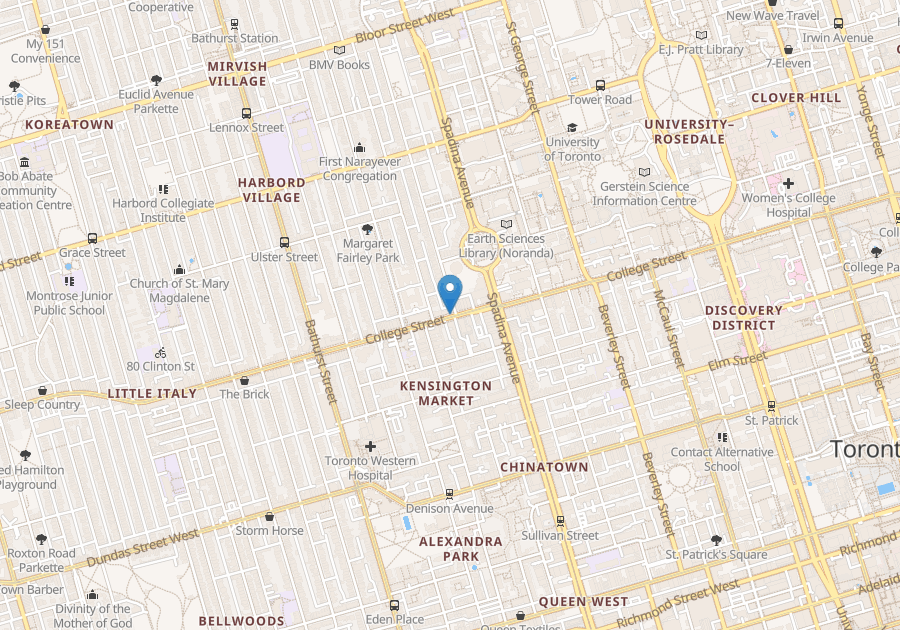 College and Spadina. 2 bedroom apartment available for rent. Large Kitchen with ceramic floors, sunroom 4 piece bath and large closets. No parking, hydro extra.