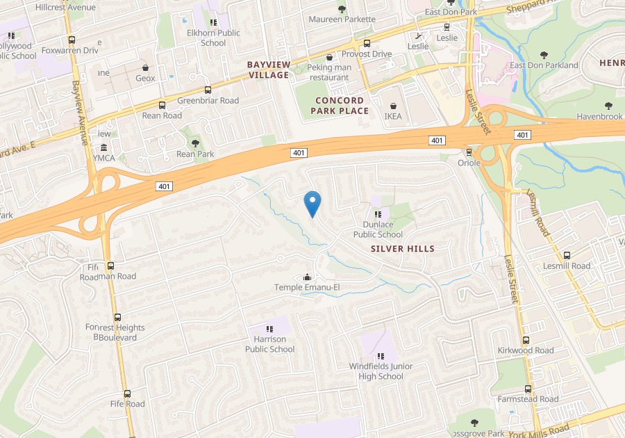 Walking distance to Bayview Subway station. Direct bus route to York Mills station. Walking distance to North York General Hospital, Bayview Village and two other plazas. In the catchment area for Dunlace Elementary School, Windfields Middle School (IB), York Mills Collegiate and the French school École Secondaire Étienne-Brûlé.