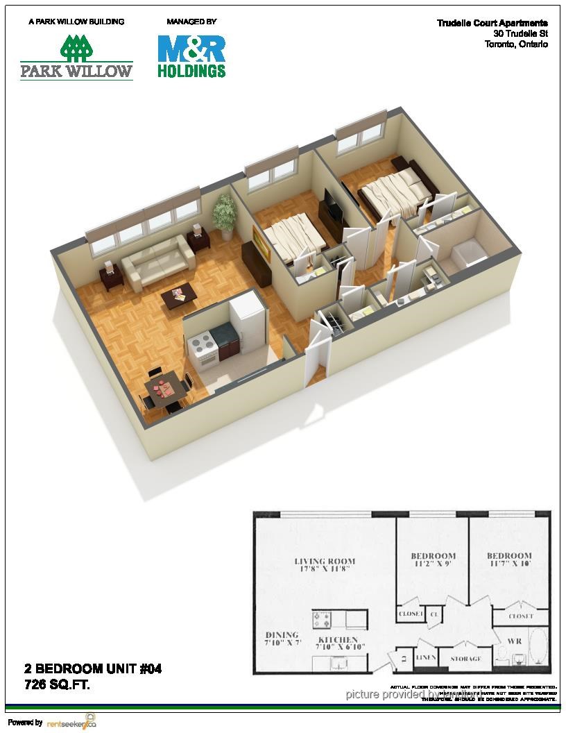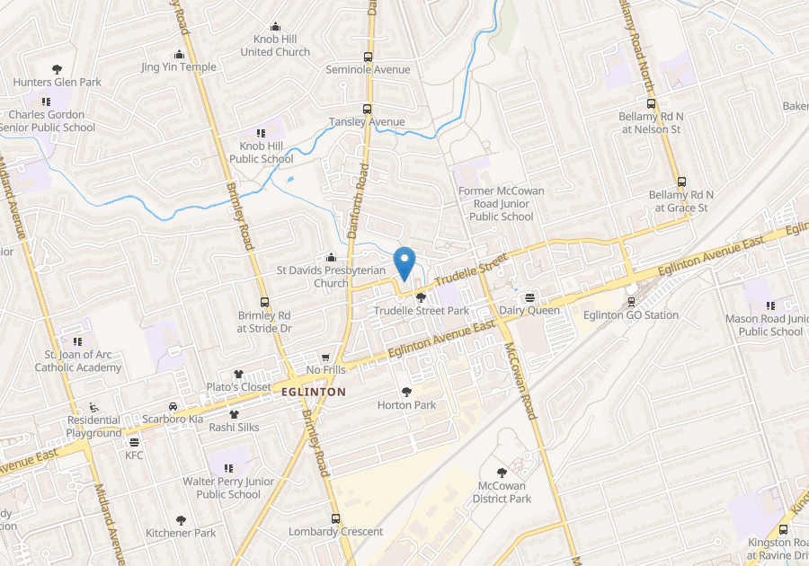 This family-oriented building is just a block north of Eglinton Avenue East. There are a number of schools within walking distance and with outdoor parking and affordable rental rates it’s a popular choice for those looking to settle in the area.