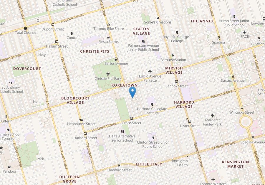 neighborhood in Toronto. Nearby parks include Bickford Park, Christie Pits