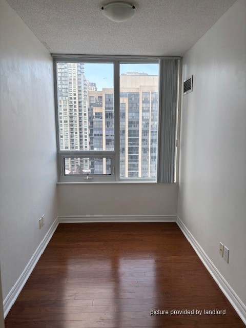 A bright, beautiful corner unit on the 16th floor of a high-rise building in the heart of North York, includes a balcony, and windows in every room. Upgraded features include granite counter-top, stainless-steel appliances, front-load washer and dryer, and beautiful dark brown hardwood floors throughout unit.