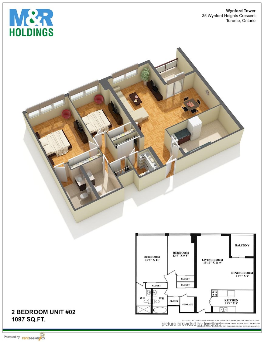 2 Bedrooms apartment.