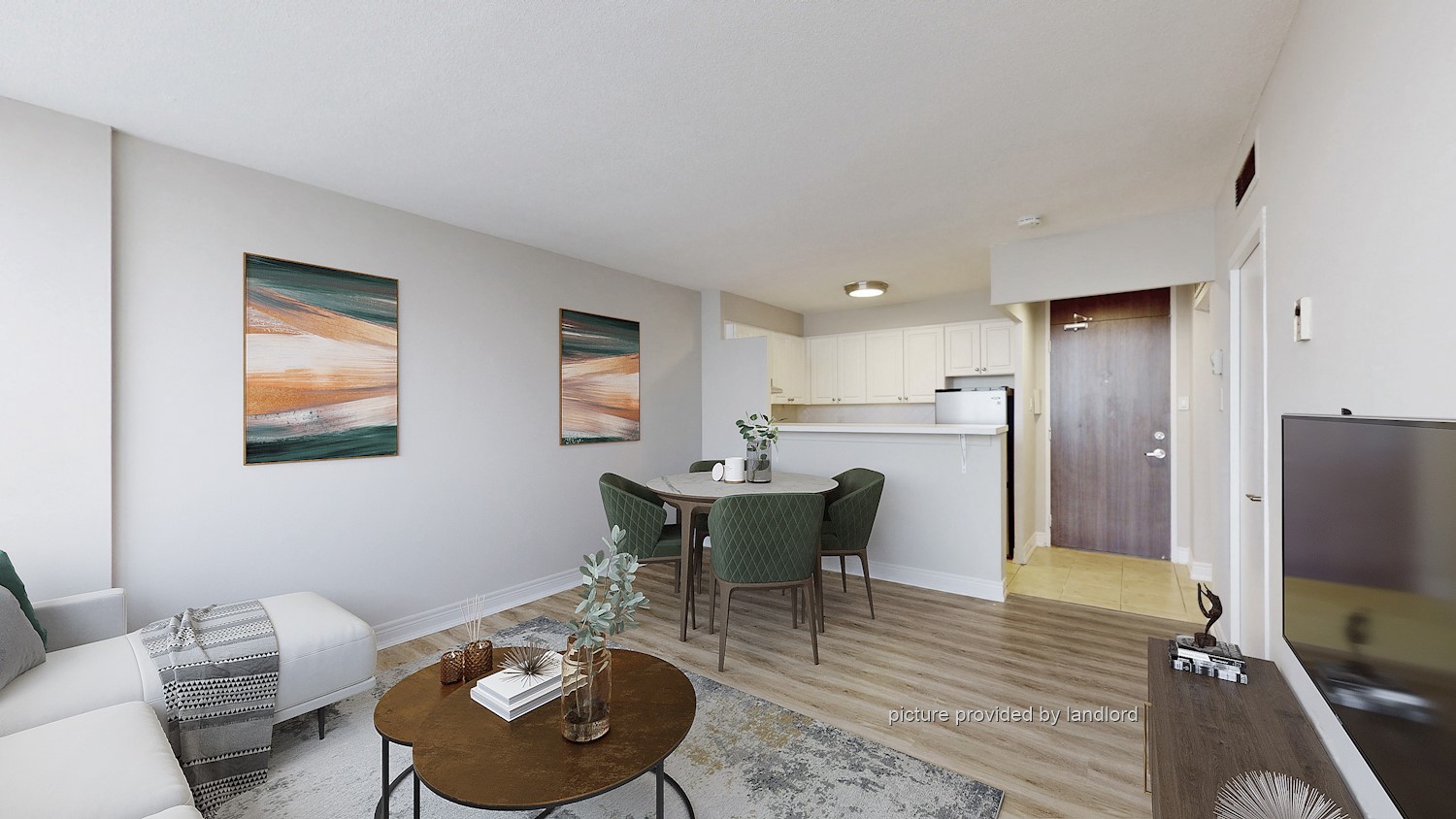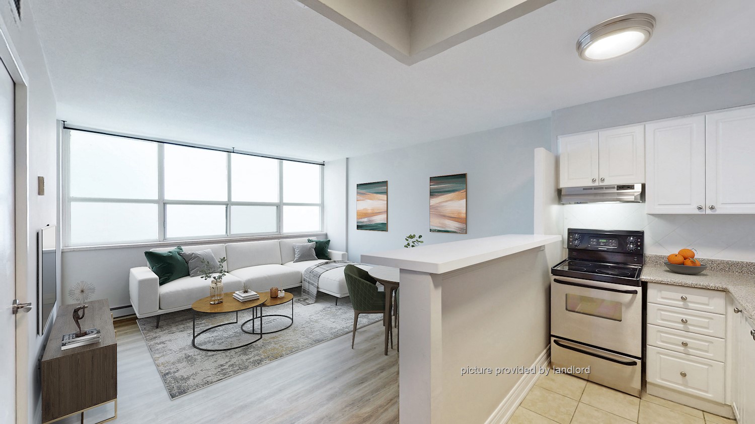 Note: Units are unfurnished; staged photos for illustration only. Hydro is