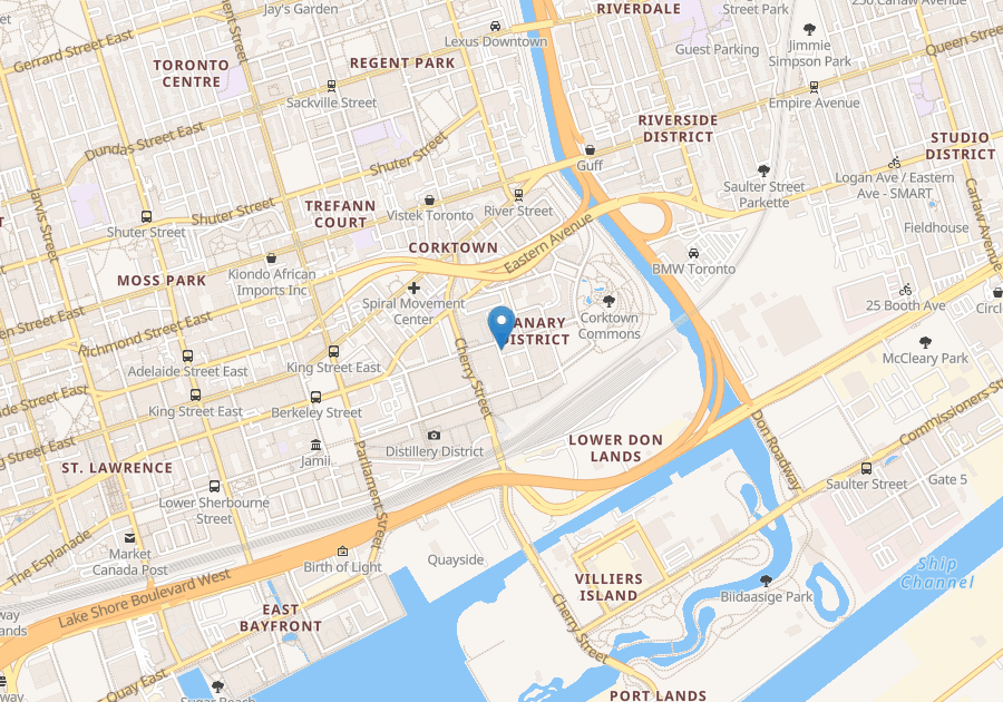Open concept the unit features 9ft., floor to ceiling windows w/custom blinds, hardwood flooring, stone countertops, modern Kitchen with fridge, stove, Range-hood and built-in dishwasher/microwave. It has front-loading washer and dryer and a storage locker. Bedroom has a large walk-in closet. The building offers onsite Management, 24/7 Concierge, security, GYM, Sauna, Guest Suite, meeting and party room w/Kitchen, Outdoor Terrace w/BBQ. The Condo is convenient located near Flagship YMCA, George Brown College, Trendy Restaurants, Marche Leo Market and Shops. Steps to Distillery District, Corktown Common, the Don River Trail and waterfront paths. Easy access St. Lawrence Market and minutes to Financial District, Gardiner Expressway, Lakeshore Blvd, Cherry Street and King/Queen streetcars. Heating, Air conditioning, Water and Unlimited High-speed Internet included in rent. Hydro extra.