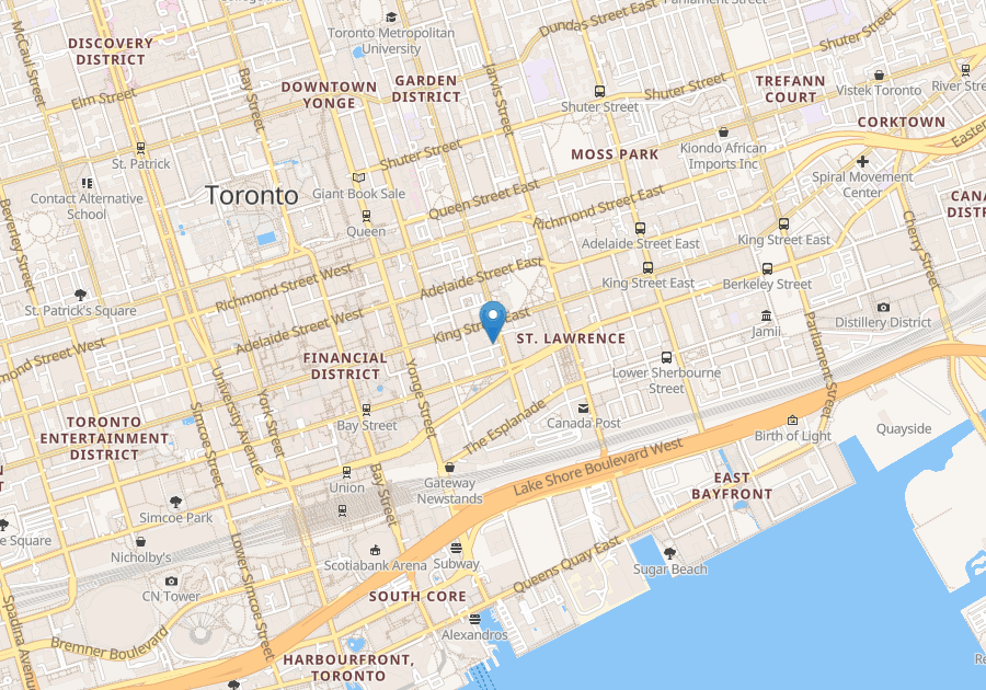 Walking distance to St. Lawrence Market, Financial District, Eaton Centre, restaurants and cafes.