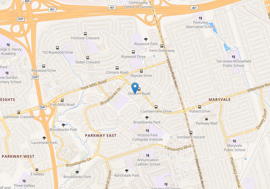 The oversized junior one bedroom, one bedroom, two bedroom and three bedroom units at Gailong Towers have refurbished hardwood floors and balconies. The building features laundry facilities on every floor, controlled access with an Enterphone system, garage or surface parking, elevators and an on-site staff. Three bedroom suites also have 1 1/2 baths. Just steps to the TTC on York Mills or Victoria Park and a short drive to the DVP and 401 with month-to-month or yearly leases available.