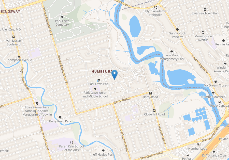 located in a residential area of Etobicoke. It offers easy access to the