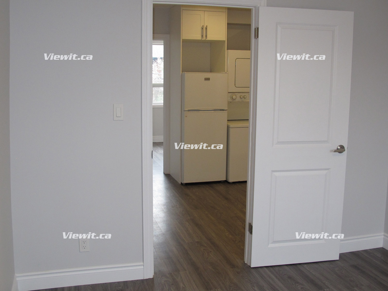 Available for May 1st. Newly renovated! Very Bright, 2nd floor 1 bedroom apartment with separate entrance. Separate living room and kitchen. Front porch available. A/C throughout the house. En-suite washer-dryer. Use of shared backyard. Kitchen includes, fridge/stove. 3-piece washroom. $1,950.00 per month, Water included (gas and hydro extra)