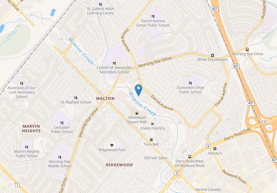 7280 Darcel Avenue is located in a quiet residential area backing onto park land near Goreway and Derry Road in Mississauga, we are conveniently located close to shopping, transit, schools, major highways and the airport. The neighbouring Malton Community Centre offers quality amenities, fitness centre, arena, gymnasium, library, sports fields and playground. The building offers air conditioning, parking and laundry facilities. The newly renovated large 2-storey suites are available in 2 or 3 bedrooms with main floor dens, balconies, in-suite laundry hook-ups and hardwood floors. Your renovated suite offers an open-concept kitchen featuring modern features and finishes including chrome accents, breakfast bar, laminate countertops, new overmount sink, and tiled backsplash. A full stainless-steel appliance package is included. Bathrooms include upgraded fixtures, new mirror, and new vanity with laminate countertop. Throughout the unit you will find newly finished flooring – either polished and refinished parquet flooring or luxury vinyl plank flooring – new tiles in the kitchen and bathrooms, and brand-new light fixtures. Interior walls and doors have been upgraded with fresh paint and modern hardware to complete the look and feel of your bright and modern space. Heat and water are included. Residents enjoy the convenience of the location and living among the serenity of a lovely neighbourhood.