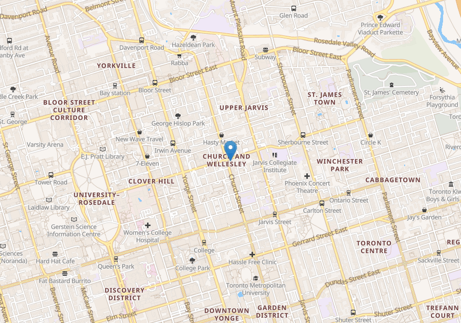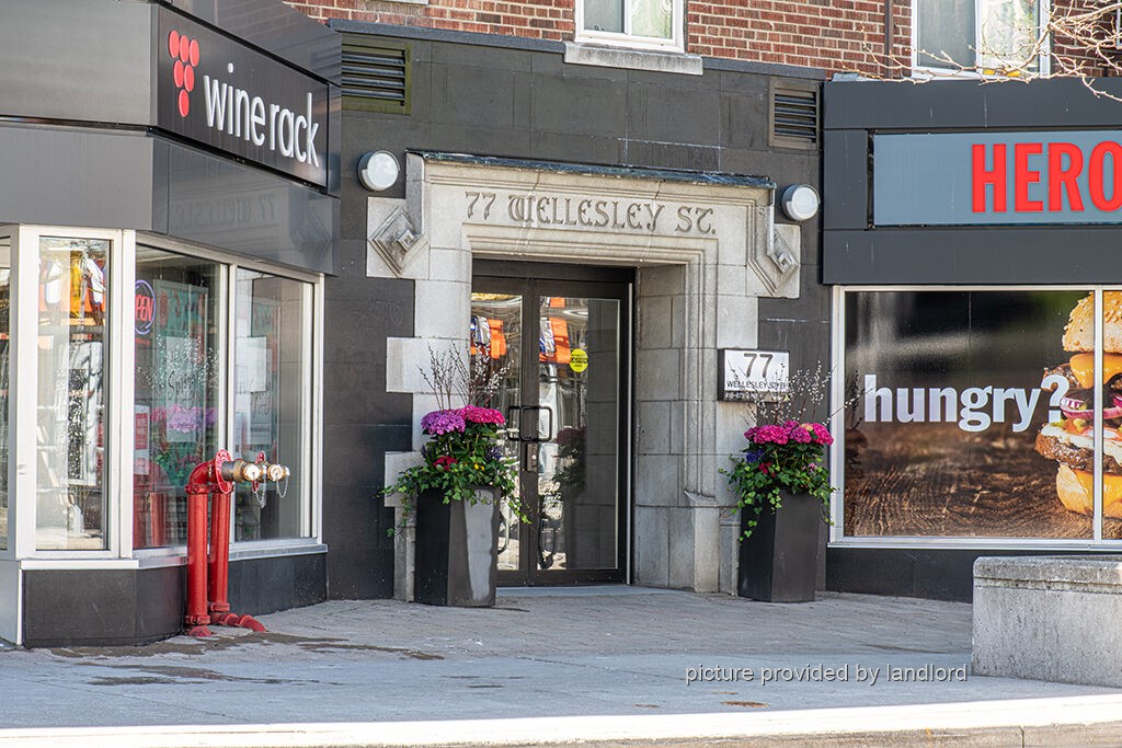 An enviable location, 77 Wellesley is just a 1 minute walk away from Wellesley subway station, Bay Street and Queens Park and a great choice for Ryerson University and University of Toronto students. The building offers laundry facilities, storage lockers, indoor and outdoor parking, a moving room and on-site staff. It is super convenient to go grocery shopping or for short trips out of the city. Residents come home to beautifully renovated suites featuring dark hardwood floors, gorgeous stainless steel appliances, stone countertops, tiled backsplashes and completely updated bathrooms. With numerous shops, Loblaws, Pusateris, restaurants, cafes from Tim Hortons to Starbucks and small coffee shops, theatres and more just outside your door, what more could you ask for?
