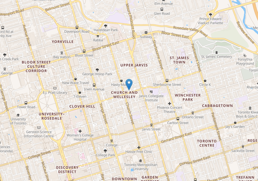 An enviable location, 80 Wellesley is just a 1 minute walk away from Wellesley subway station, Bay Street and Queens Park and a great choice for Ryerson University and University of Toronto students. The building offers laundry facilities, storage lockers, indoor and outdoor parking, a moving room and on-site staff. It is super convenient to go grocery shopping or for short trips out of the city. Residents come home to beautifully renovated suites featuring dark hardwood floors, gorgeous stainless steel appliances, stone countertops, tiled backsplashes and completely updated bathrooms. With numerous shops, Loblaws, Pusateri’s, restaurants, cafes from Tim Hortons to Starbucks and small coffee shops, theatres and more just outside your door, what more could you ask for?