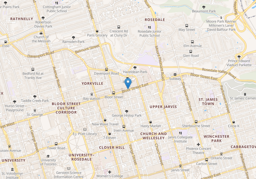 Live in the heart of the city with convenience at your doorstep from grocery, restaurants and cafes to great shopping in opulent Yorkville. The cachet of Bloor and Yonge is in Yorkville, where opulence and luxury know no bounds. Whether it is a little bit of pampering, brand-name shopping or stylish five-star dining, you will be indulged in Toronto’s Mink Mile. But not just restricted to the rich and famous, the area is a cross-section of a bit of everything. Having transformed from a tourist hub to a slick city stroll, there are a wide variety of great stores that cater to all budgets, where stylish shopping meets creative cuisine.