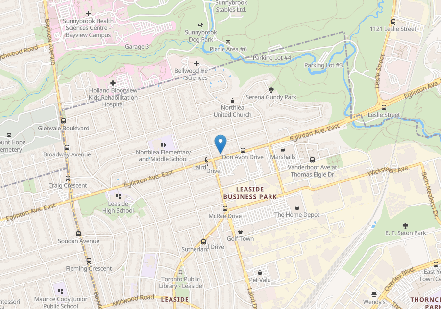 Lynn-Laird Apartments is a 3-storey walk-up and has 37 suites of various sizes and is located in the safe and much sought-after neighborhood of Leaside. It is perfectly located to transit, shopping, schools and parks. The major intersection is Laird and Eglinton Avenue East. We are a pet-friendly building Two bedroom suite features include Oak hardwood flooring, vertical blinds, dishwasher (except in bachelor suites), cable and parking ($90)Neighbourhood is steps to transit, bus stop nearby, 25 minutes to downtown Toronto, 5 minute drive to the DVP and just 15 minutes to Highway 401.