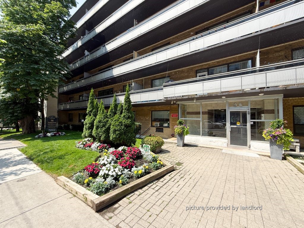 Welcome to Baintree Apartments at 96 Jameson Avenue. Our apartments offer a convenient location for your new home right on Jameson Ave. and near by Lakeshore and King Street. The building stands out on the street after beautiful renovations including new windows, doors and balconies. Most units offer spacious balconies for our residents to use. Enjoy the convenience of having laundry facilities on every floor. The large suites offer 9-foot ceilings with wider-than-normal hallways, large kitchens even in the bachelor apartments. Baintree Apartments are located at the Jameson and Dunn exit off the Gardiner Expressway for easy access to anywhere in the city. For those that do not drive, the Martin Goodman Trail is close by and it is a very short walk to catch the King West Streetcar. Amenities include underground and outdoor parking, elevators, public transit, laundry facilities on every floor, on-site staff and private driveway. Enjoy nearby parks, coffee shops and shopping. Schools and daycares are also close by.