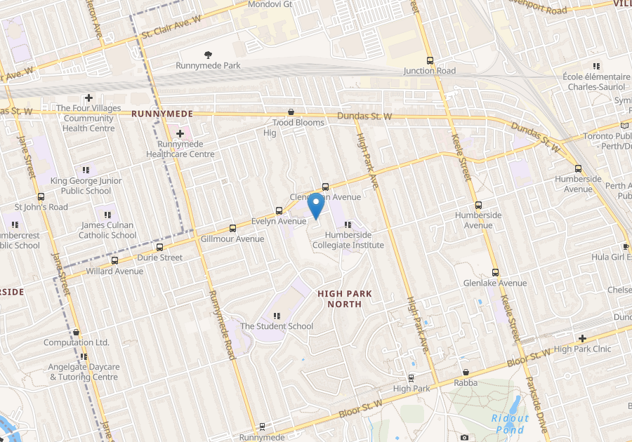 Parking only. Near High Park Station (Google says 14 minute walk). Small area
