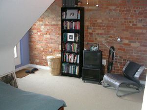 - Exposed brick walls and hardwood floors, giving it a lovely loft feel