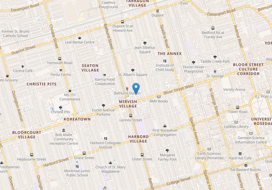 Approx 900 sq. ft., main floor 2 bedroom apartment with 10 feet ceilings,hardwood floors, exposed brick, 5 appliances, separate forced air/heating system, wood burning fireplace, single car parking. Minutes to TTC (Bathurst Station) and shopping. Available January 1st. 2026. No pets/smoking. $2500 plus Hydro. Business hours 9:00 am - 5:00 pm. Call 416.787.4404
