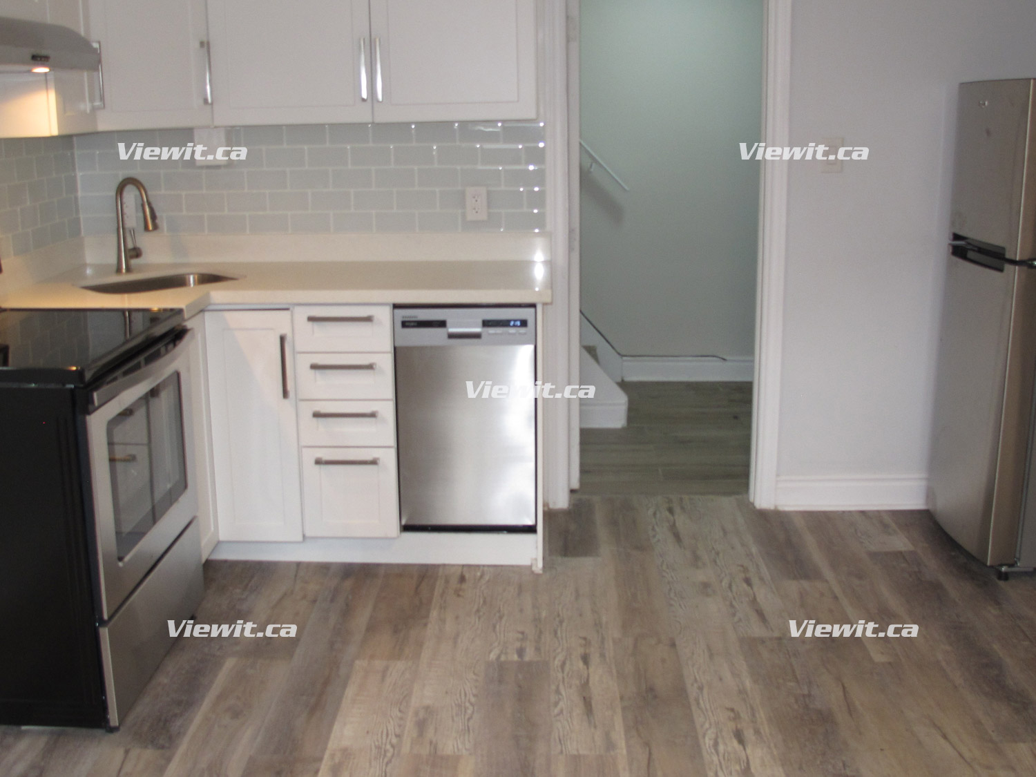 Open concept and bright. Kitchen includes stainless steel fridge, stove, and dishwasher. 1 Full bathroom. Laundry on-site.