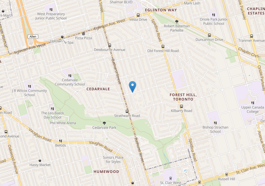 Close to all amenities, TTC, and bus routes. 7 min walk to St. Clair West subway station, Cedarvale Park, shopping on St. Clair West.