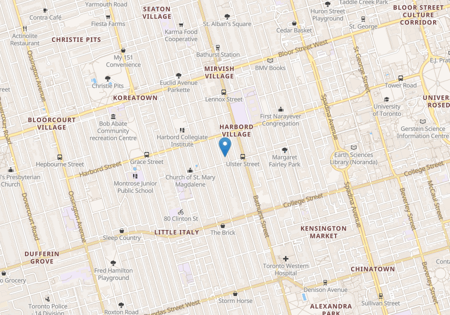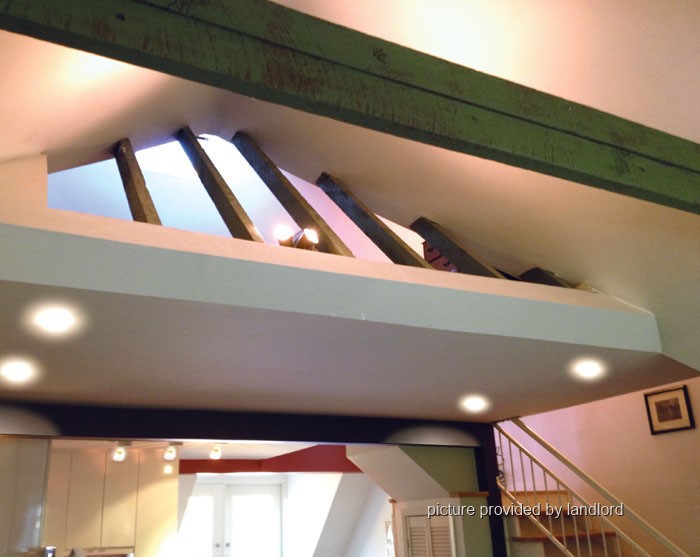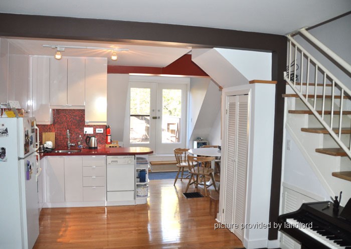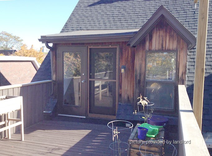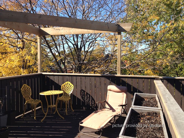 Central COLLEGE - On Markham Street between College and Harbord: Bright 1bedroom, 3rd floor, studio style apartment with loft and cathedral ceilings in a large Victorian brick house on a beautiful tree lined street, open kitchen with gas range, dishwasher, shared laundry on 2nd floor, separate thermostat within dependent forced air gas furnace, 720 sqft + 200 sqft deck with fire escape,front driveway parking. 2700/mo including utilities.