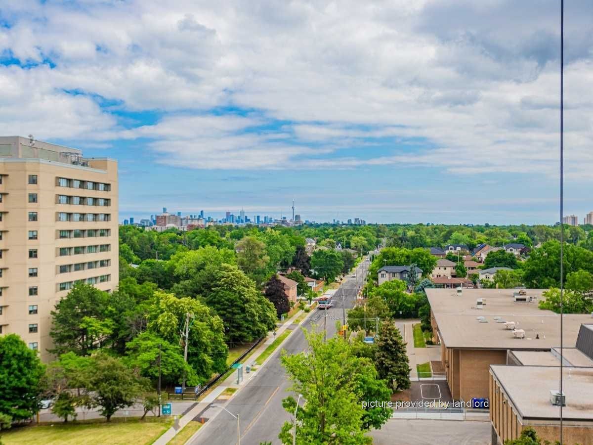 the city skyline and CN Tower, Generous size balcony from Livingroom/dining room, 2nd balcony from master bedroom. each bedroom has its own closet, walk thru to the Master Bedroom. Bus stop in front of the building, walking distance to Yorkdale Mall and Yorkdale Subway Station and Synagogue. 3 min to daycare, Public School, elementary and High school (in same building). Baycrest arena and park located at the at the kitty corner. Walking distance to Nofrills Supermarket and TD Bank branch.