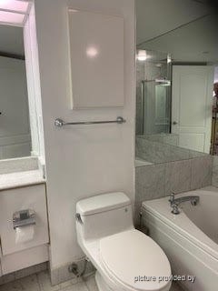 The one-bedroom unit faces south-east with lots of sun exposure and views towards the financial district and lake. Two large closets in the bedroom with access to the washroom with bathtub and separate shower. Full-sized fridge, stove and dishwasher, with new washer and dryer.