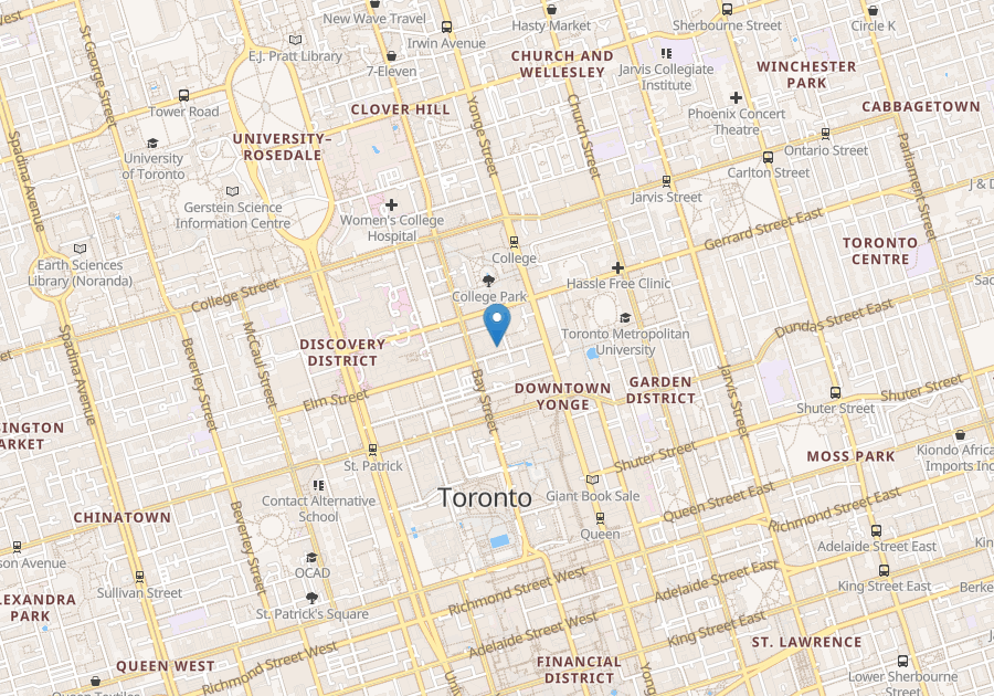 Ideal for professionals working in the Financial District, University of Toronto, Ryerson University or hospitals (Sick Kids, Mount Sinai, Toronto General, Princess Margaret Hospital, St. Michael's). Common areas on the 2nd floor allow residents to use the library, meeting room or main area to work from home.
