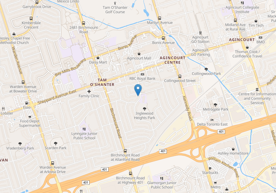 Located in a quiet, family-friendly neighborhood within walking distance to Agincourt Mall and park. Convenient access to Highway 401, Highway 404, TTC transit, GO station, Scarborough Town Centre and Fairview Mall shopping centers.