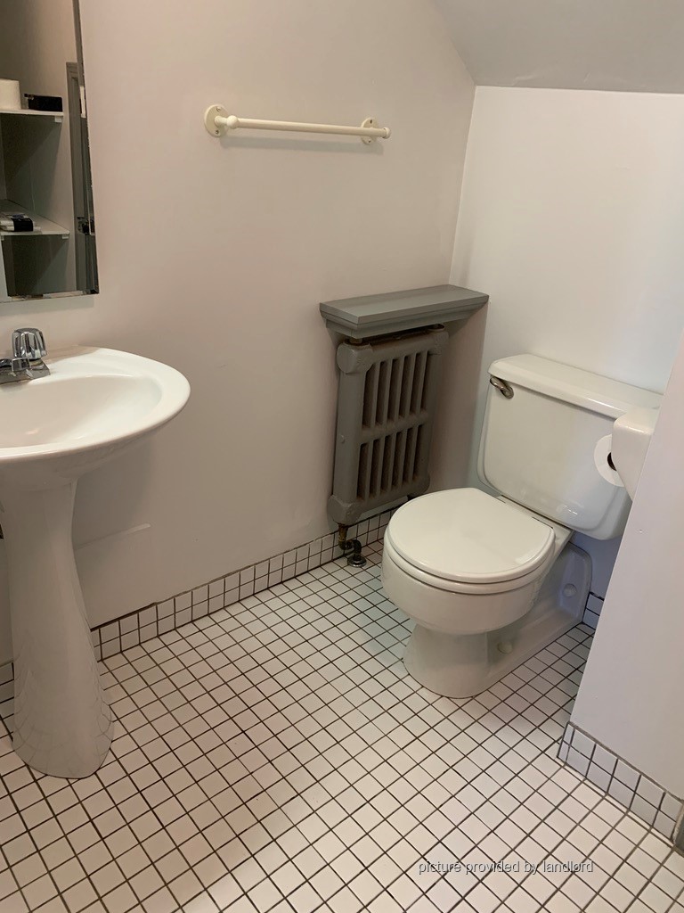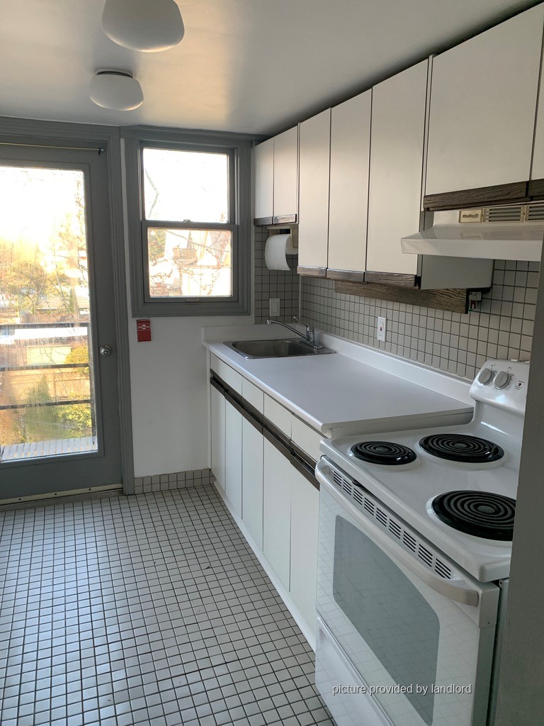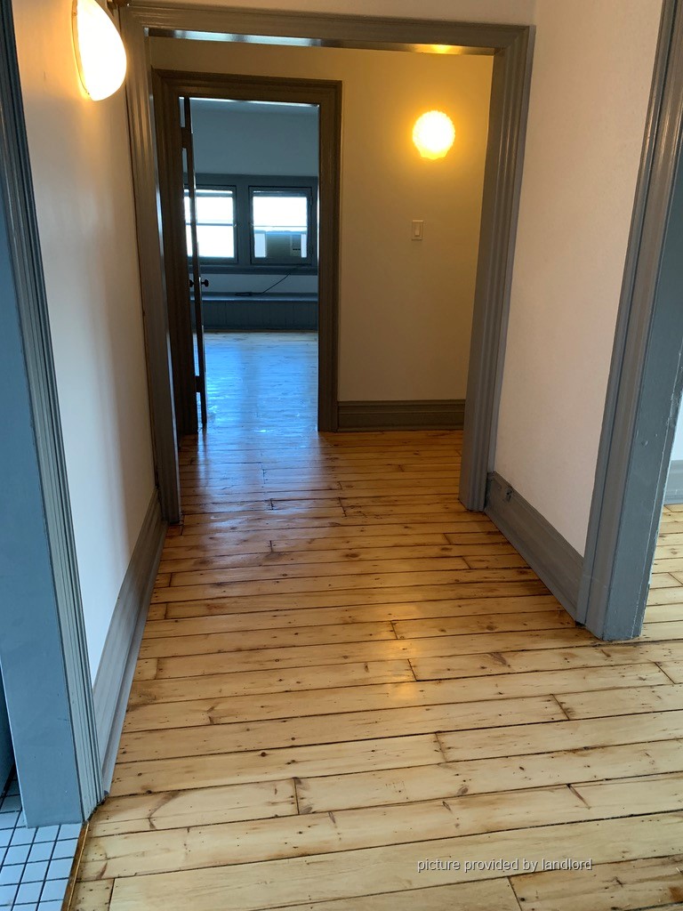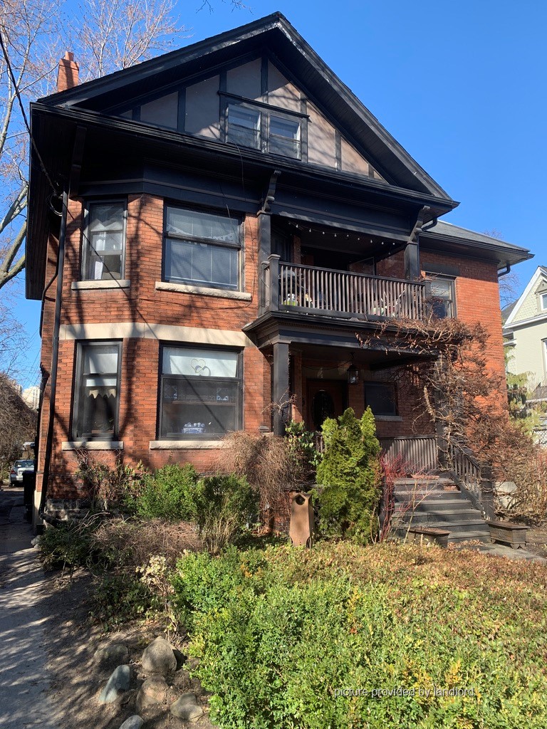 High Park. Large, bright, 2 bedroom on 3rd floor, in stately, quiet, Edwardian house. Private entrance. Entrance hall, living/dining room, large principal bedroom, smaller 2nd bedroom, galley kitchen with exit door to fire escape. Refinished pine floors. Recently redecorated. Shared laundry. Parking available. Landlord on site. Class A fire alarm, smoke detectors.