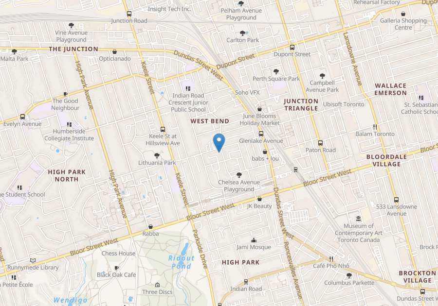 Five-minute walk to Bloor West or Keele subway, UP/GO station; 10-minute drive to Lakeshore/Gardiner. Walk to the Rail Path, High Park, Park Lithuania, Baird Park, and Chelsea parkette.