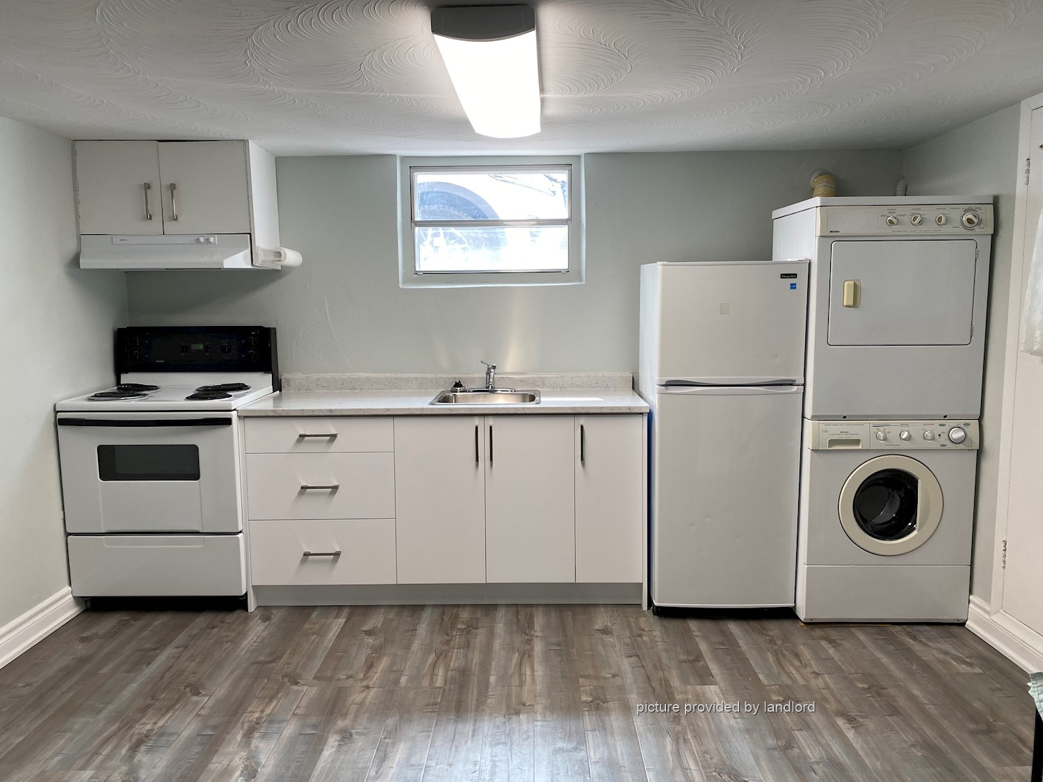 Newly renovated 1 bedroom basement apartment in detached home with private entrance and parking. Available immediately to the right tenant. Features include: new clean bright kitchen, 4 piece bathroom, new laminate floors and includes a private ensuite stacked washer/dryer. Apartment includes kitchen, living room, full bathroom, 2 long bright hallways for relaxing or small storage.