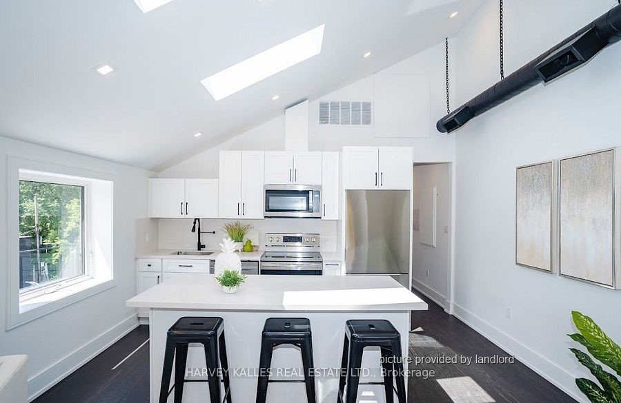 Welcome To Your Next Home, The Second Floor Of A Renovated Duplex. Open Concept With Large Windows, Vaulted Ceilings & Skylight Providing Lots Of Natural Light. East, South & West Exposures. 2 Bedroom Unit, Ensuite Laundry. Engineered Wood Floor, Great Cabinetry, Parking. Separate Private Entrance. Well Maintained and Managed