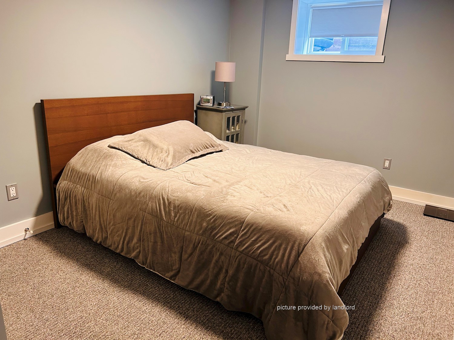 • A spacious bedroom with a queen-size bed and closet