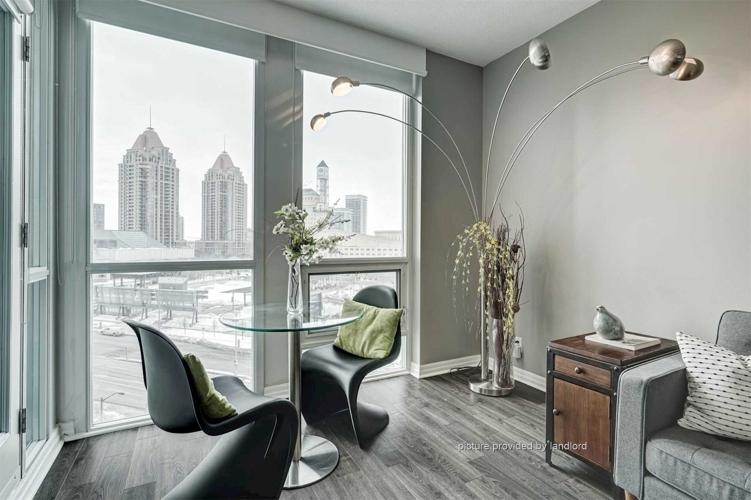 Rent includes heat, hydro, water, central air, and one parking space.