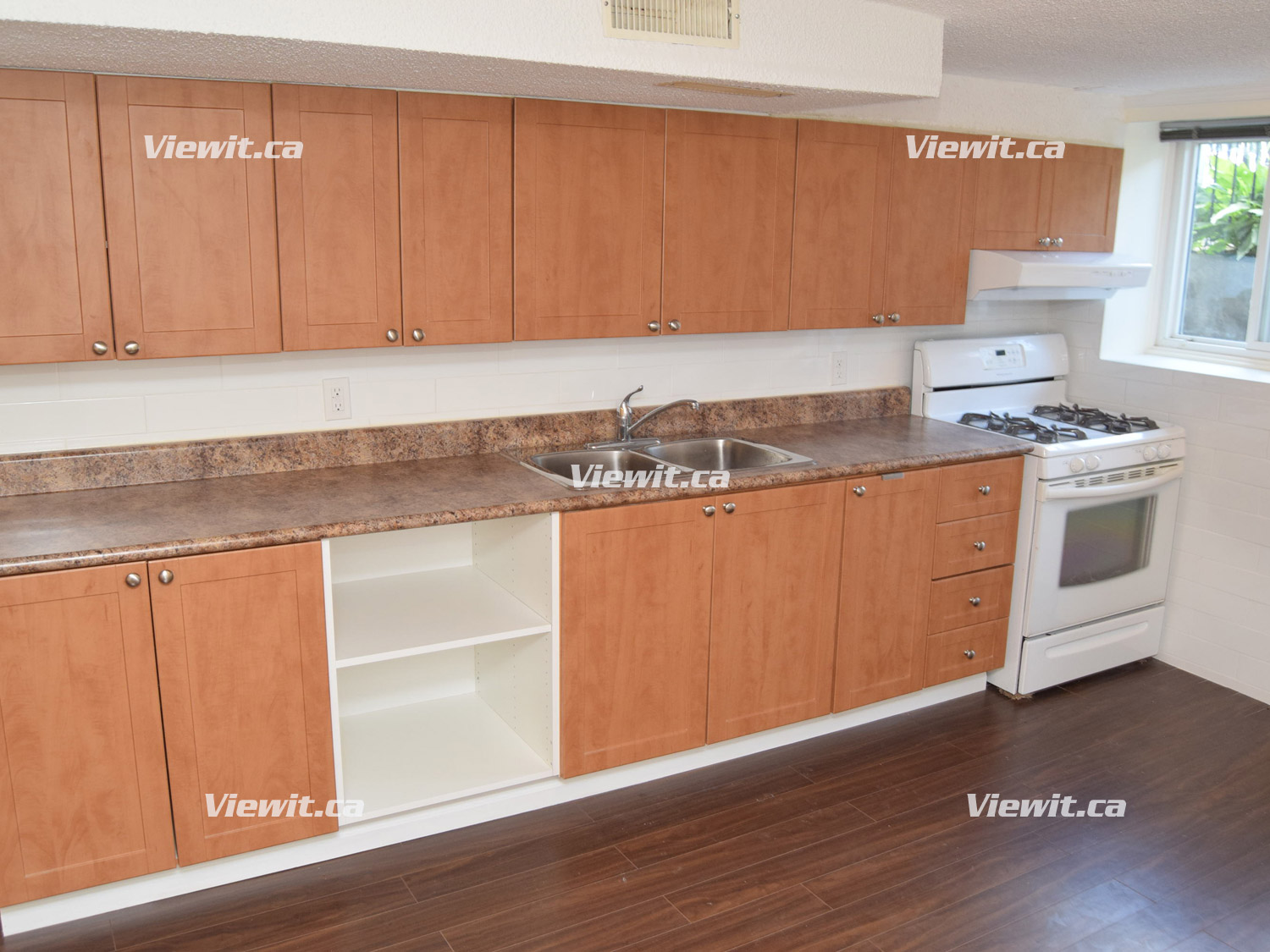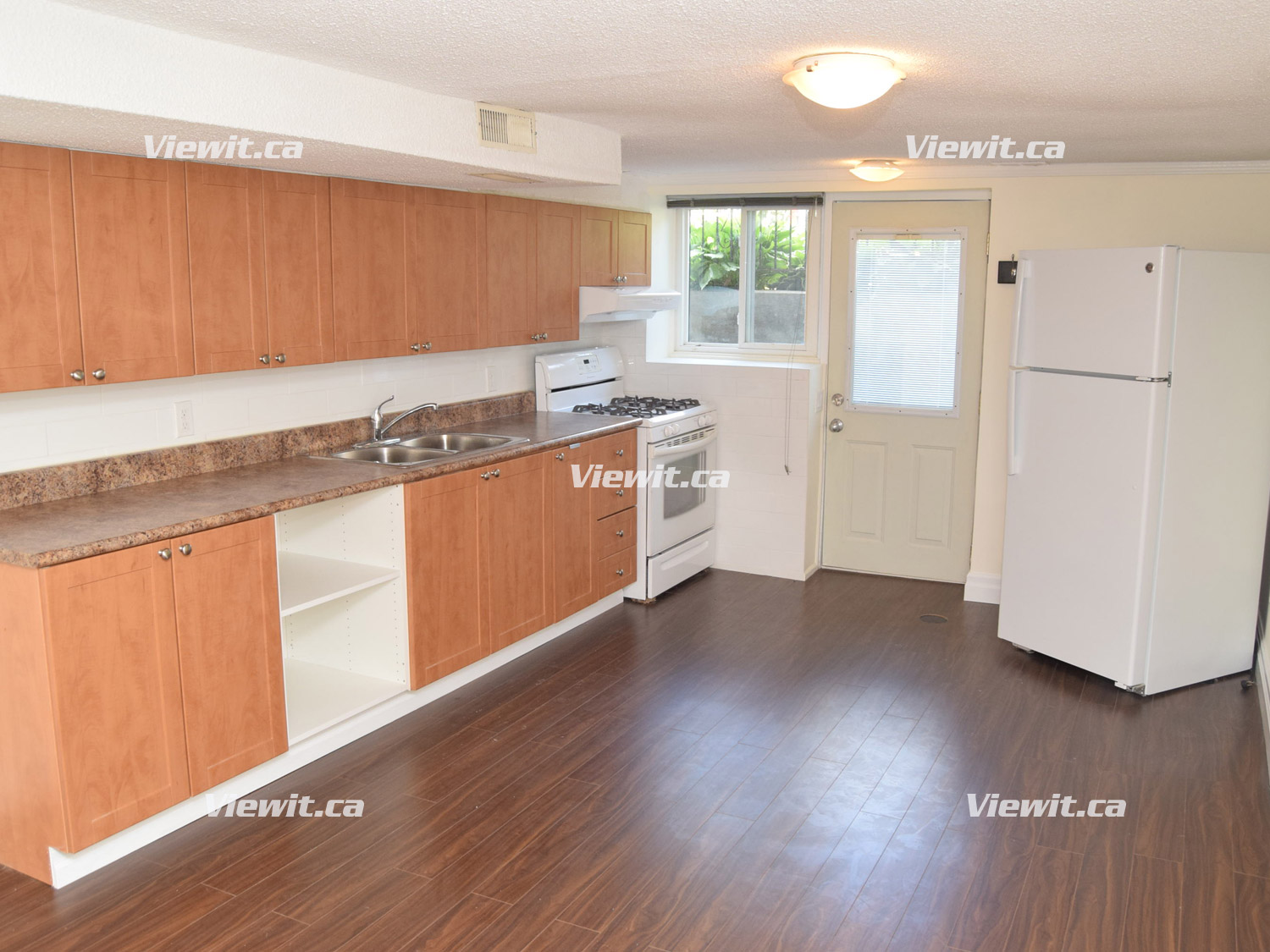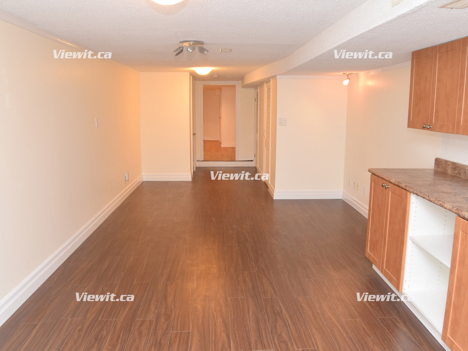 basement apartment features new hardwood floors, 7 ft ceilings, with a large