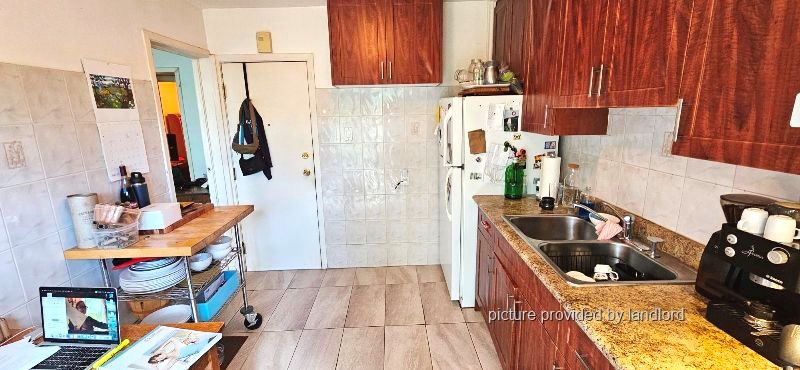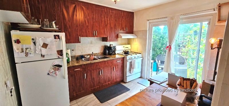 Well maintained, Bright and spacious, (2nd floor) 2 bedroom + 1 full bathroom.Large Eat-in kitchen with Fridge and stove, separate Living room, and (storageroom area). Large bay windows, Hardwood flooring and ceramic tiles throughout.(Laundromat up the street). Street parking and bike parking available. 2nd flooroutdoor patio.