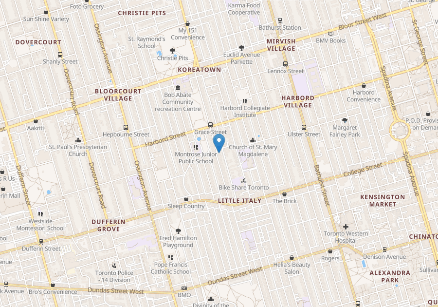 Great neighbourhood, (Little Italy);close to all amenities; restaurants, shops, eateries and TTC, College Streetcar routes.