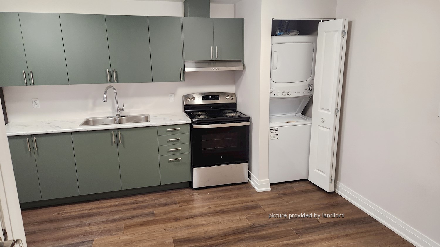 includes in-suite laundry, and water and electricity are covered in the rent.