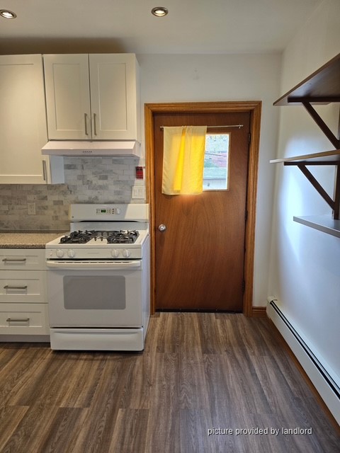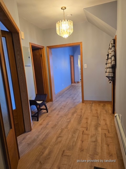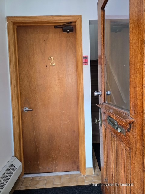 Laminate and ceramic tiles throughout apartment. Kitchen has a gas stove and full size fridge. Four piece washroom, free shared laundry and access to a large shared backyard. The apartment has hot water baseboard heaters. No ac in the apartment. Street parking is available by permit. No smoking, no pets. Available December 1st. Rent is $2600 plus hydro.