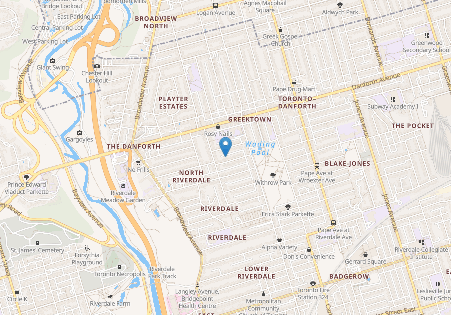 Main level unit, over 1,000 sq. ft. in the heart of Danforth Village and Riverdale. Bright living area, large 2 bedrooms + 1 bathroom apartment unit with shared backyard space. Kitchen with stove, refrigerator, microwave exhaust fan. Shared full size washer/dryer.