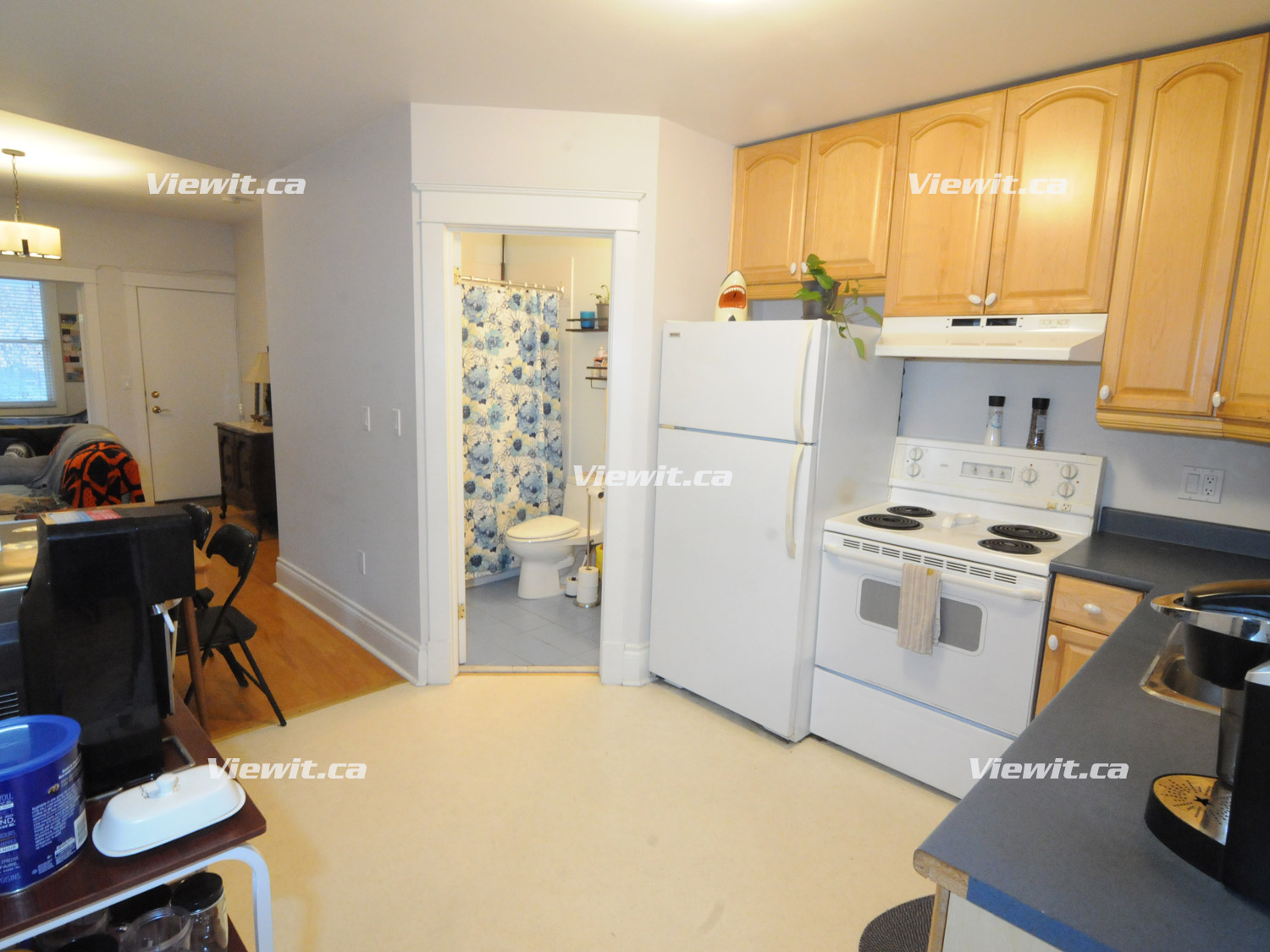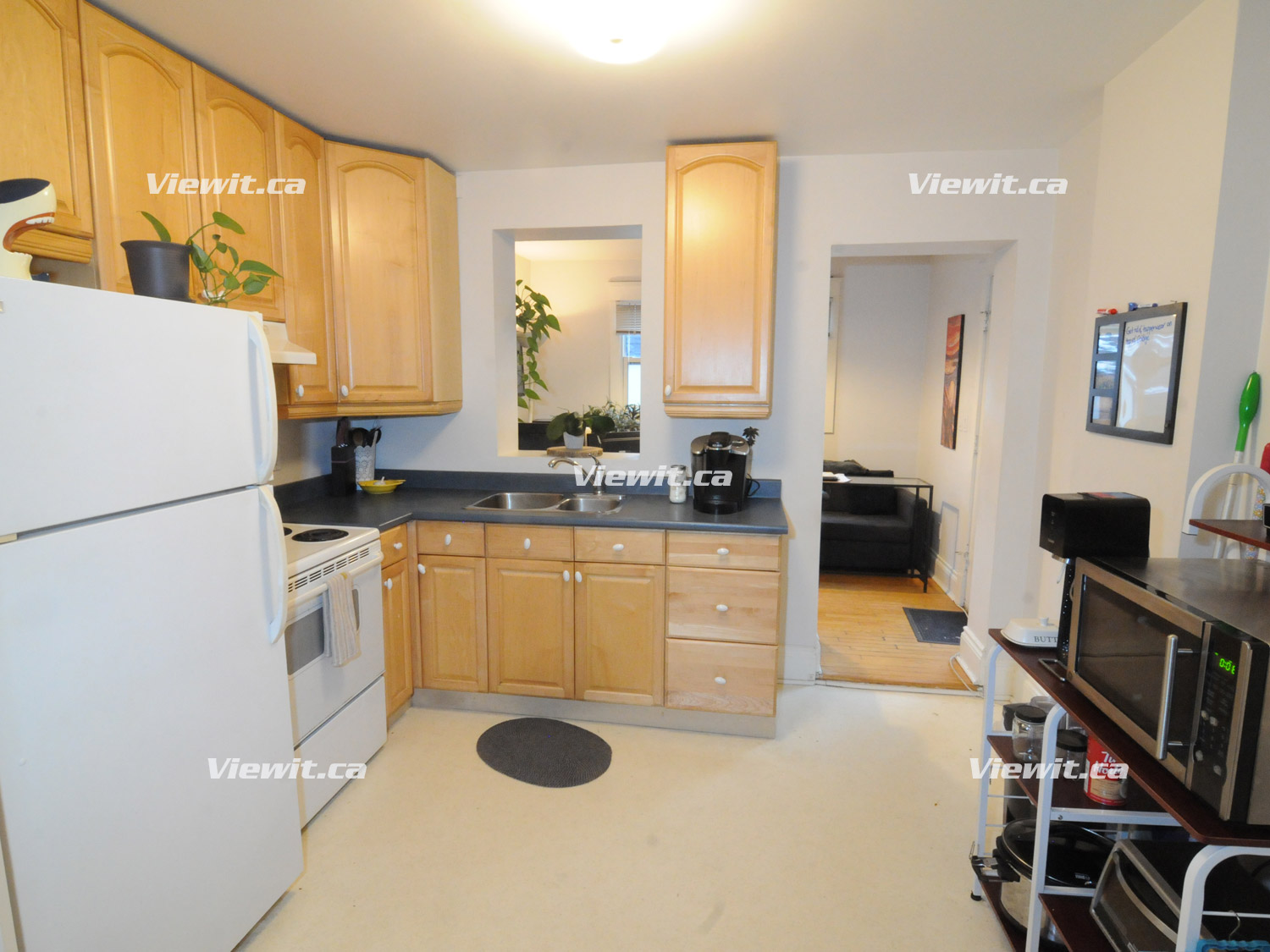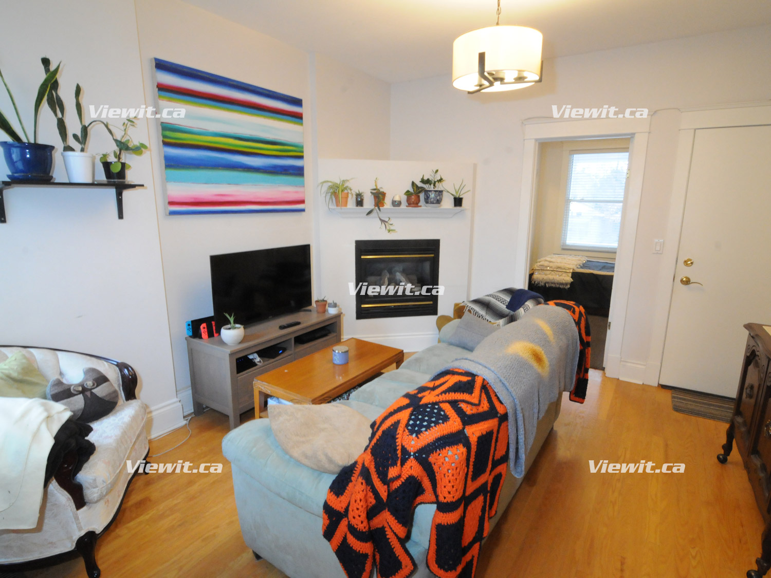 1 block from the heart of the Danforth. Bright renovated 1 bedroom + sunroom/office: living room with gas fireplace, hardwood floors, carpeting in bedroom, laundry. 4 piece bathroom, good closet/storage space, patio. No smoking and no dogs. Close to subways, great restaurants and shopping. Available April 1st. $2300 plus a fixed rate for utilities.