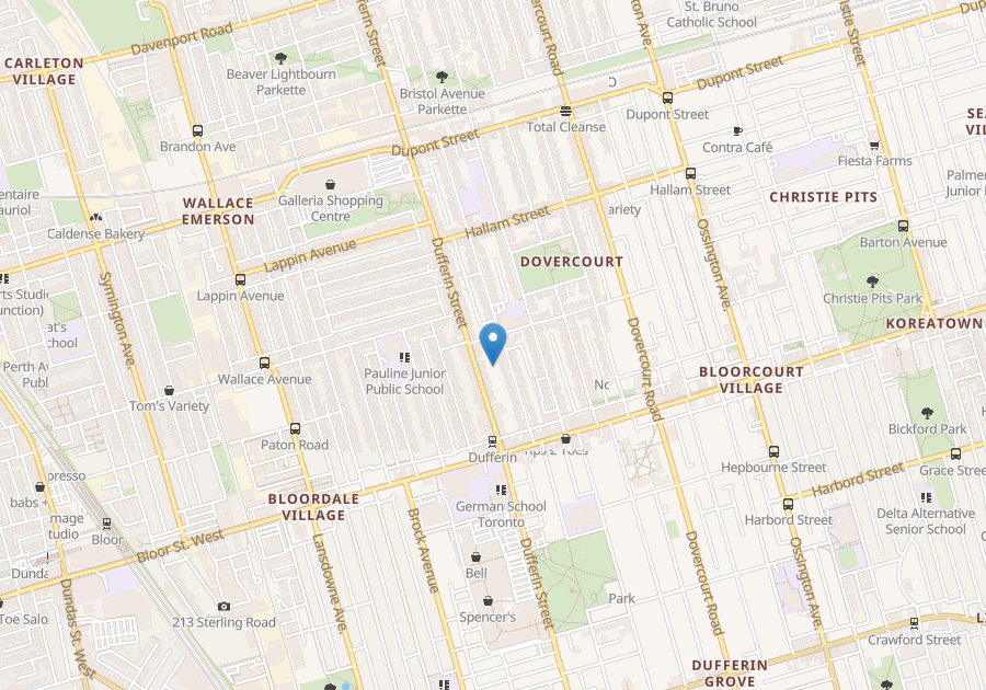 Located at the corner of Wallace and Brock, near malls, restaurants, cafes, bars, parks, TTC/subway, UP/GO.